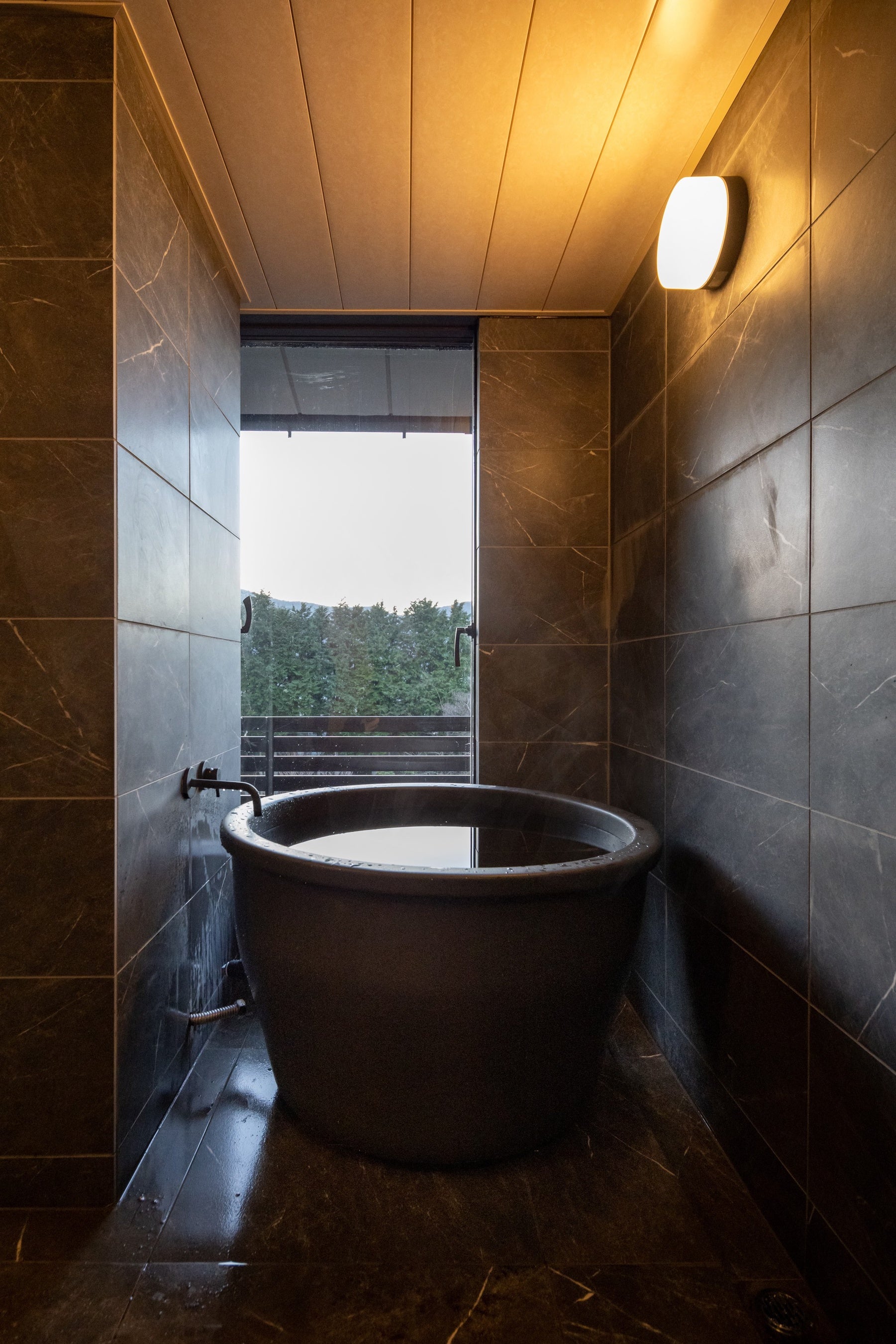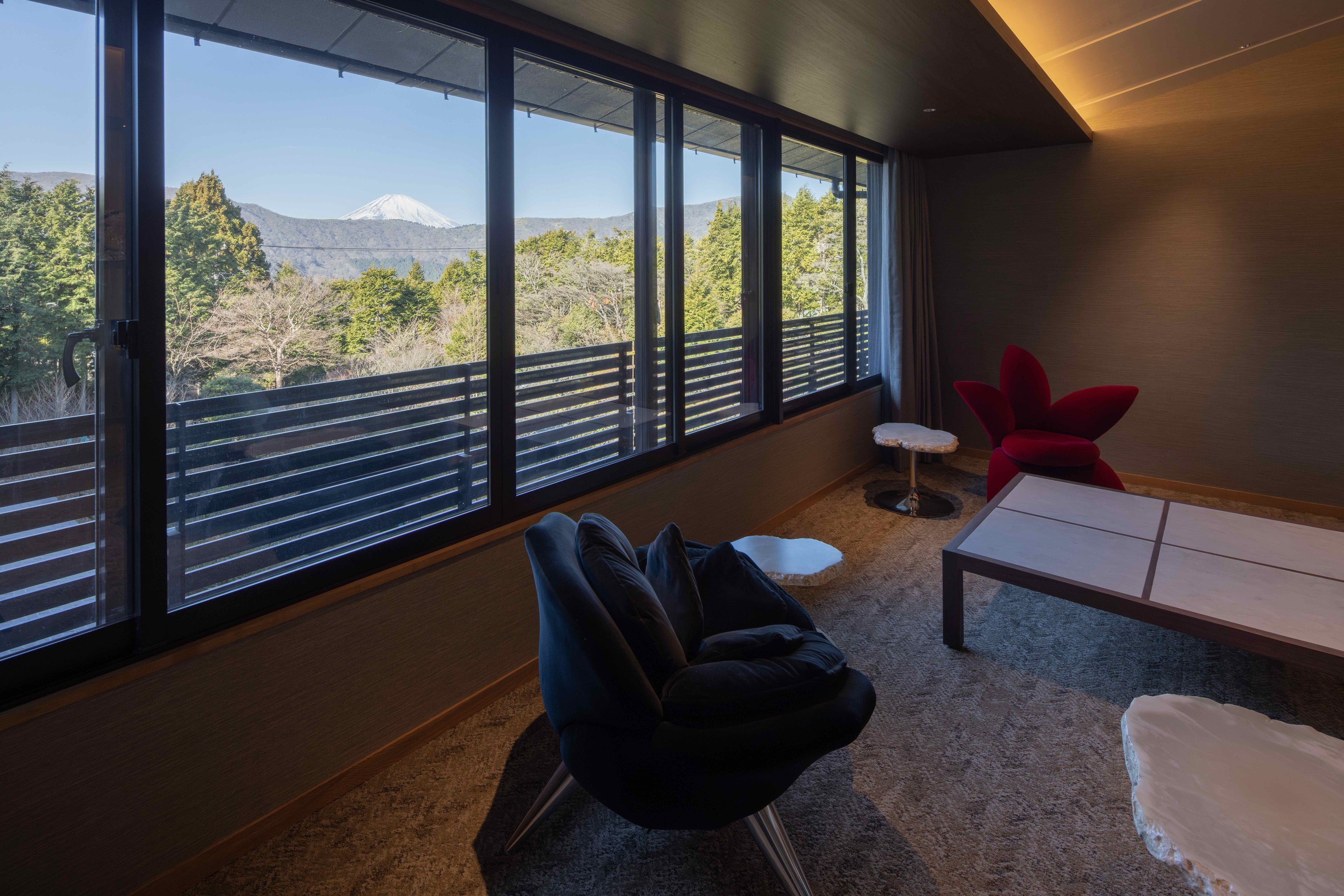 5つのスイートの料金は一室2名利用時、夕朝食付き、88,000円〜(一名料金 税金・サービス料込)。客室すべてに大涌谷の温泉、プライベートドライサウナ、水風呂が付きます。