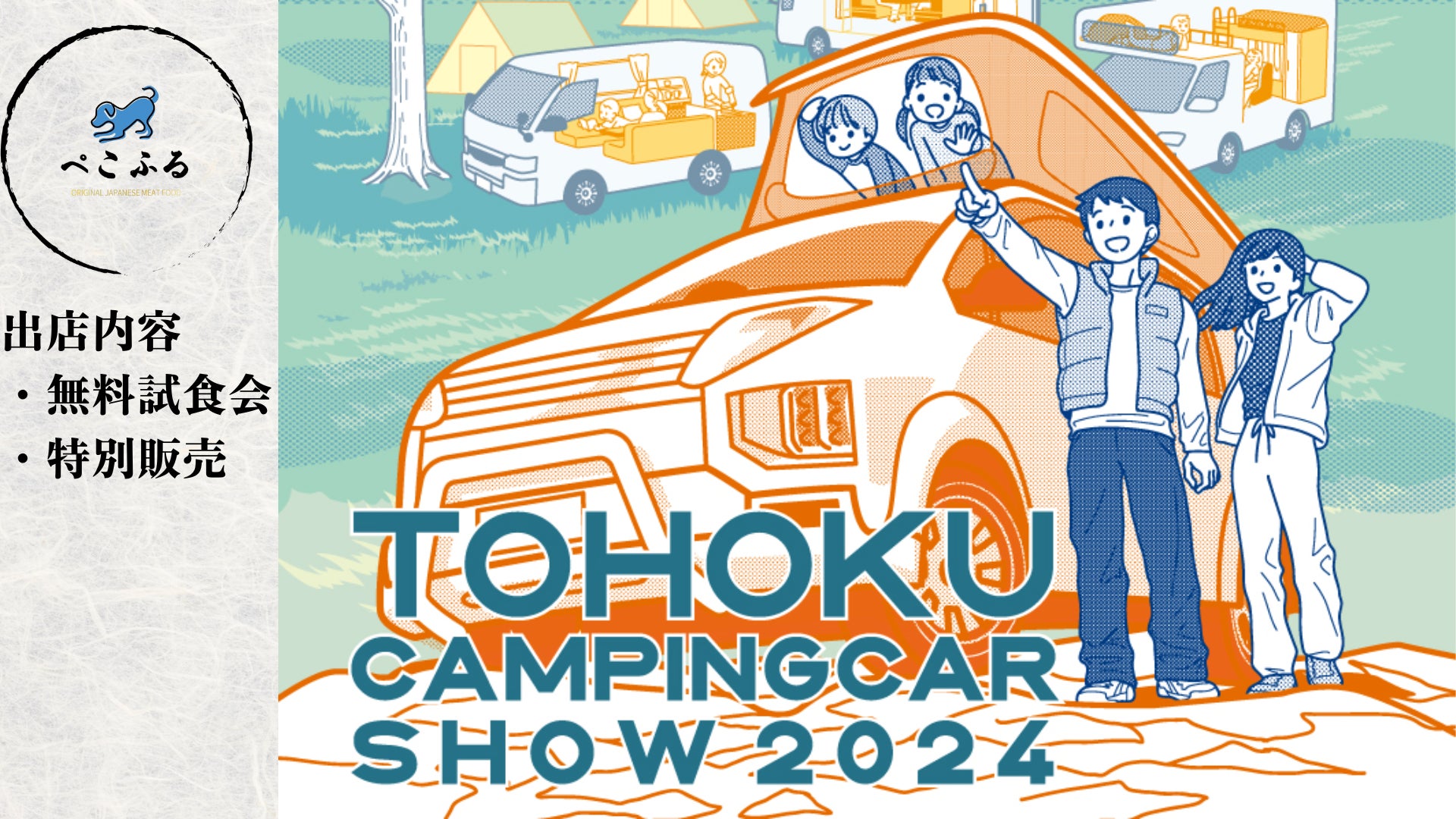 今回、東北最大級のキャンピングカーイベント「東北キャンピングカーショー2024」にて「愛犬と一緒のクルマ旅」に役立つ東北産ドッグフードとしてブース出店を致します。