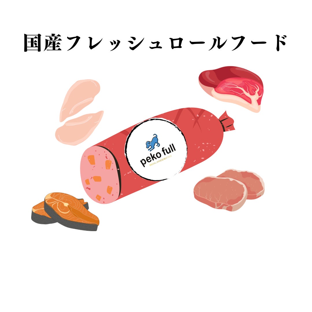 オリジナル商品の「pekofull」シリーズは、日本ではまだ珍しい海外で主流のフレッシュロールフード(ロールタイプの高品質ウェットフード)。弊社独自製法を開発することで国内製造に成功。獣医師の監修に加え、老舗食品工場の知見を活かした人間基準の品質を追求することで、全国各地の愛犬家様より「食いつきの良い国産ごはん」として好評をいただいております。
