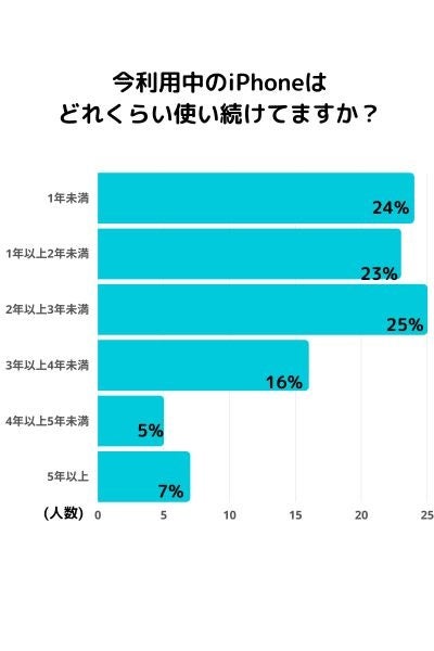 全体の約70%の方が現在のiPhoneを使い始めて3年未満という結果となりました。
