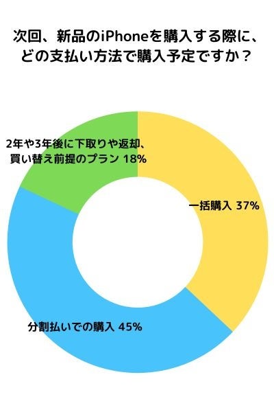 次回のiPhoneを買い替える際の支払い方法で最も多く選ばれたのは、分割払い(45%)でした。