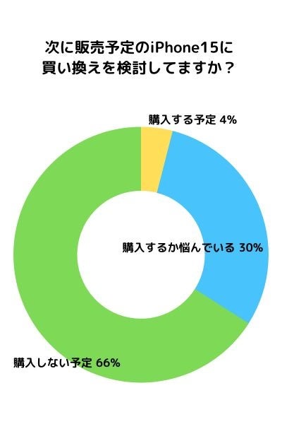 次の新型iPhone(iPhone15/Pro/Pro MAX)購入しないと回答した方が66%という結果になりました。