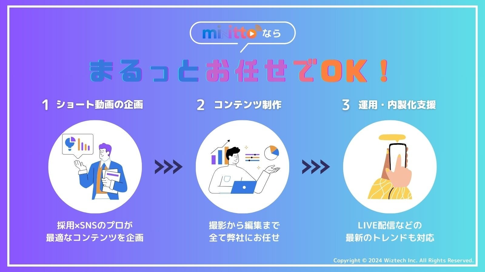 株式会社ウィズテック(本社所在地:東京都中央区、代表取締役社長 : 日向 亮介)は、2024年2月1日より、SNSショート動画を活用した採用広報サービス「minitto(ミニット)」のモニターユーザーを募集いたします。