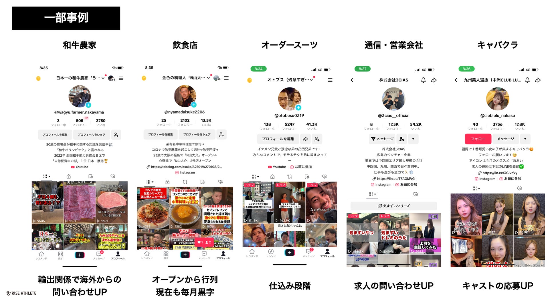 RISE ATHLETEは、SNS黎明期からトップインフルエンサーとして活動している中村優志が代表を務め、ショート動画コンサルティングでこれまでに多数の実績をつくり出してきました。