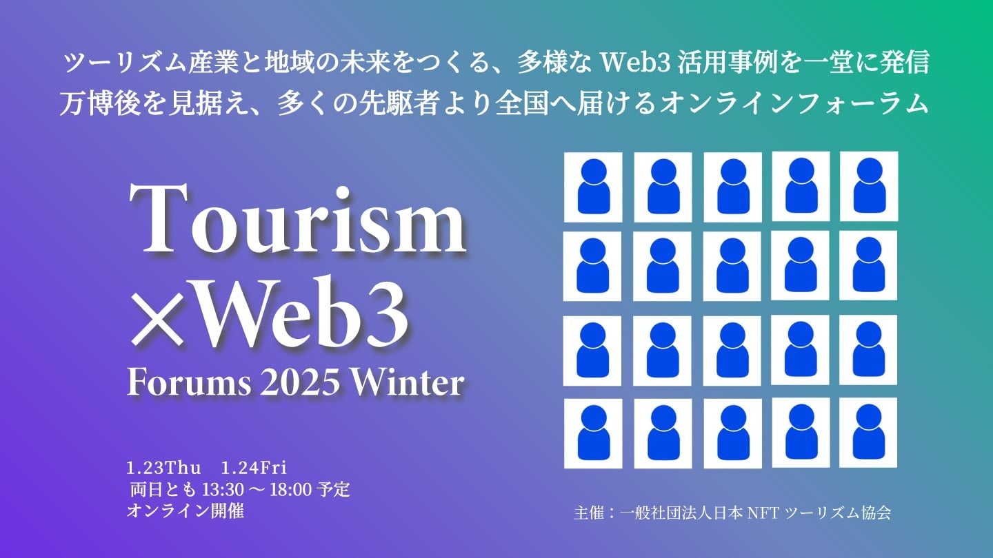 1月23日(木)、24日(金)「ツーリズム×Web3 フォーラム 2025 冬季」オンライン開催。ツーリズム産業と地域の未来をつくる20事業者が一堂に事例を発信。
