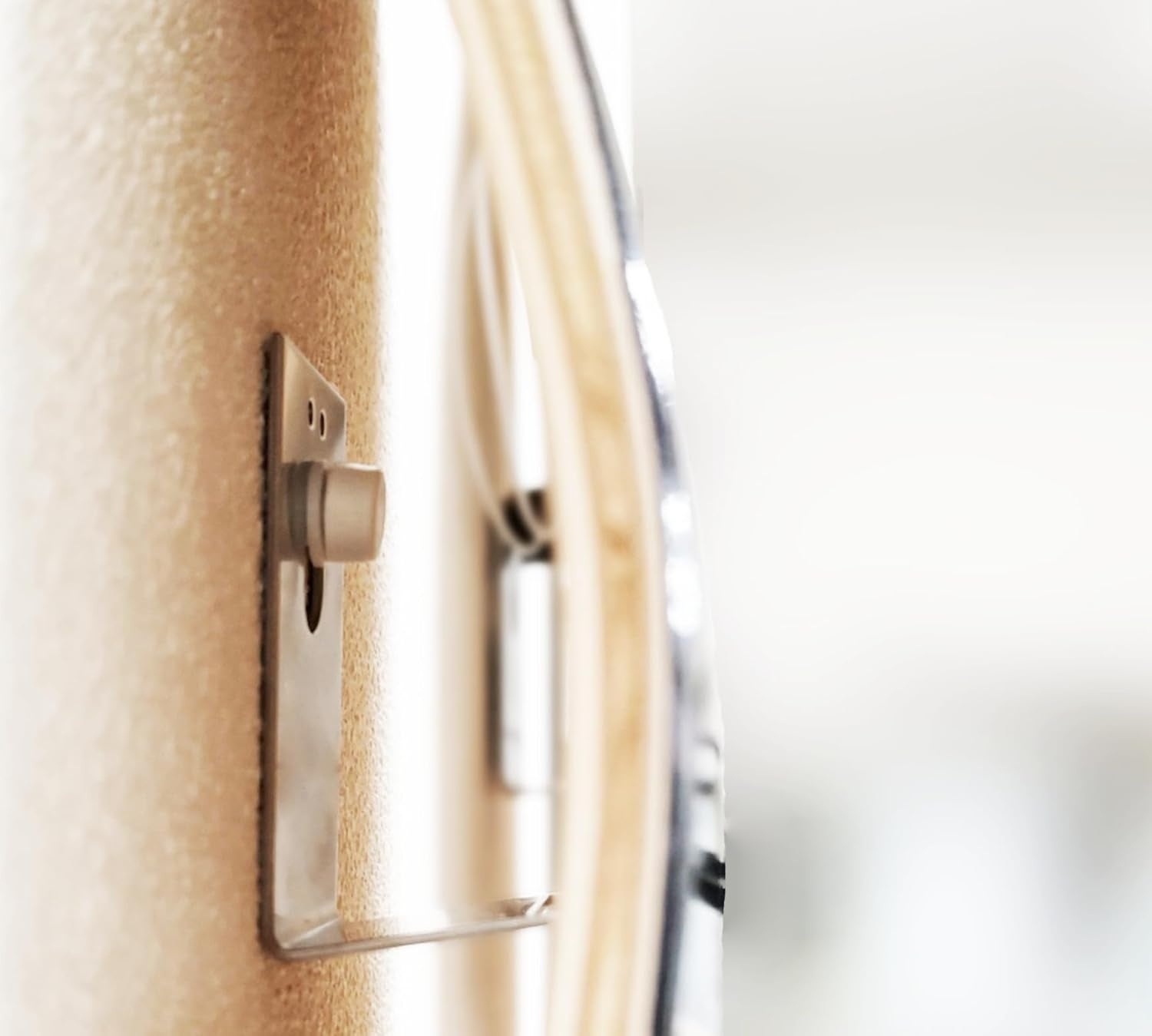 日本の住宅事情に合わせたスケボー壁掛けフックも販売しております。ピンで留めるタイプとピクチャーレールで使用する2タイプををご用意しています。ピンタイプは複数の虫ピンで固定するタイプなので賃貸物件でも安心してご使用いただけ、トラック付きでも飾れる優れものです。