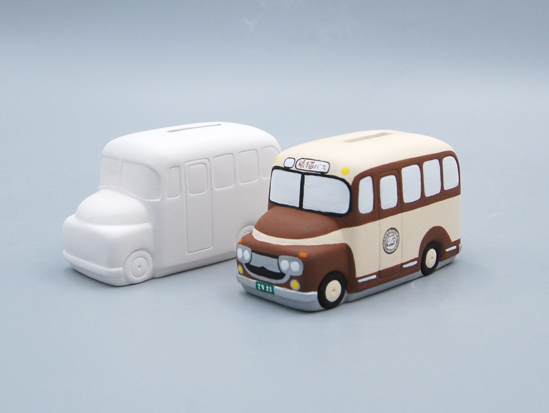STUDIO 894の駐車場でフォトスポットのひとつにもなっているボンネットバス(通称:ボンバス)。レトロな外観で親しまれているボンバスが、館内で体験できる陶器ぬり絵の素地に新たに加わります。自分だけのボンバスづくりをお楽しみください。