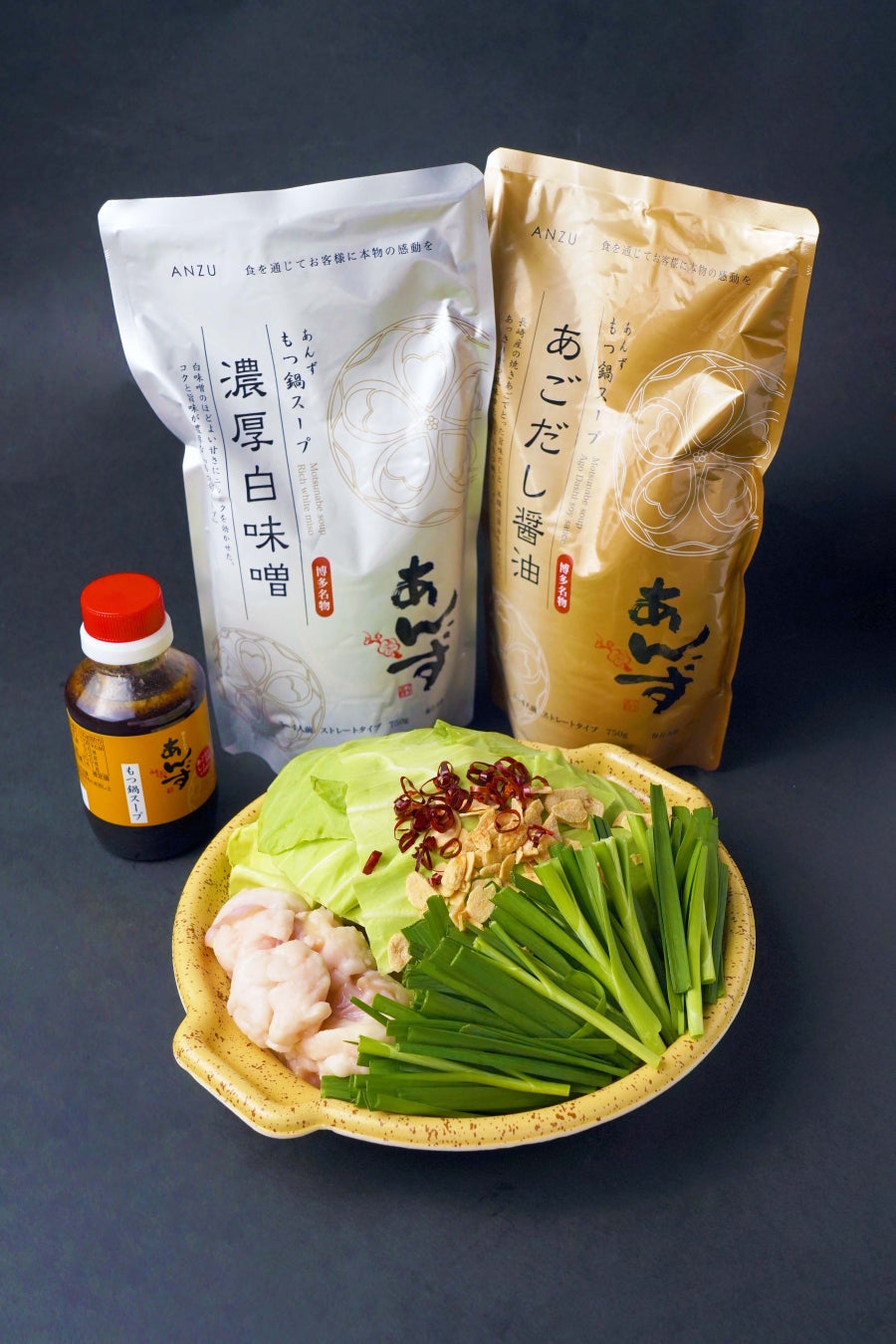 ・あんずのもつ鍋スープ 濃厚白味噌/あごだし醤油