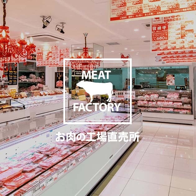 福岡県内を中心に、精肉専門店として全国に23店舗(フランチャイズ店を含む)を展開する「あんずお肉の工場直売所」は、宮崎牛を中心としたブランド肉の仕入、生産、加工、配送までを一貫して自社で行なっております。高い品質を確保すると同時に、企業努力を重ね最高のお肉宮崎牛A5等級のみを手頃に食べて頂きたいという思いを価格に込めて販売中です。通常のスーパーでは手に入らない、タン、シンシン、トモサンカクなど希少部位のほか、小腸、千枚、アキレス腱などホルモンも多数取り扱っています。精肉は約300種、自家製惣菜は約50種販売し、餃子や肉まん、ウインナーなど自社製造のあんずブランド製品も展開しています。