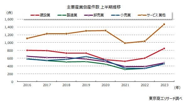 2023年度上半期の産業別件数は、1991年同期以来、32年ぶりに10産業すべてで前年同期を上回った。