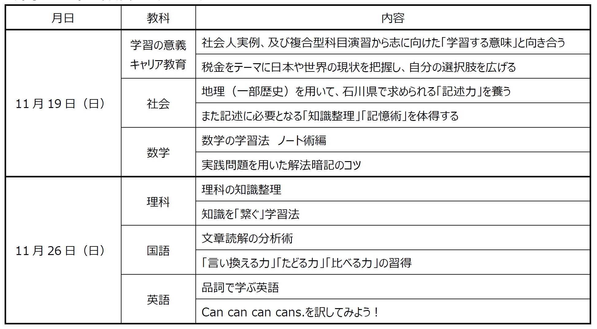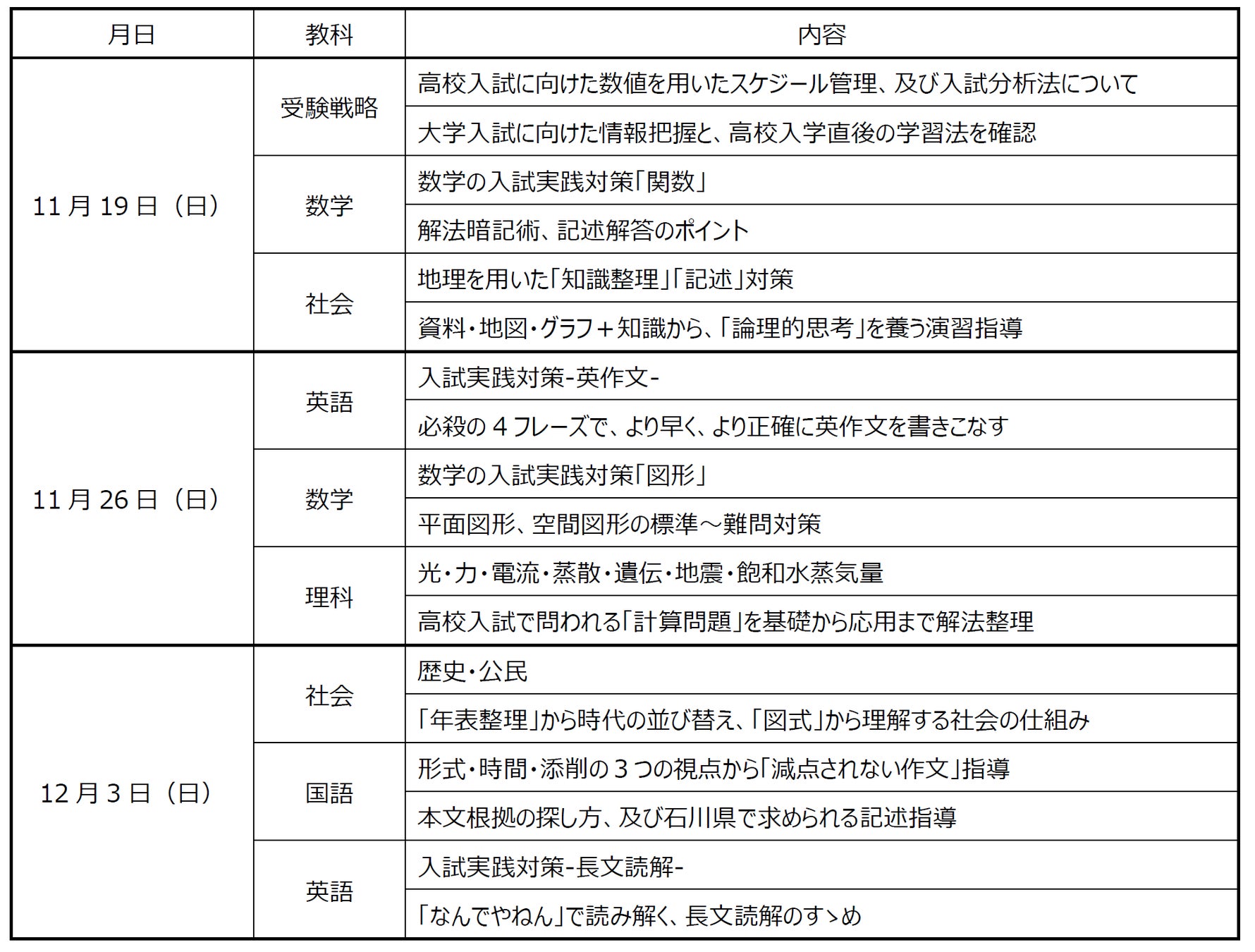 11⽉19⽇(⽇) ~東大セミナーが宝達中で高校受験対策講座開講!