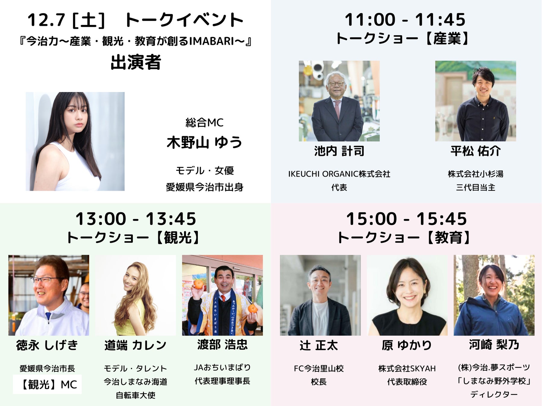 今治に所縁のあるゲストをお招きし、それぞれの関係分野でIMABARIについて語っていただくトークショー。