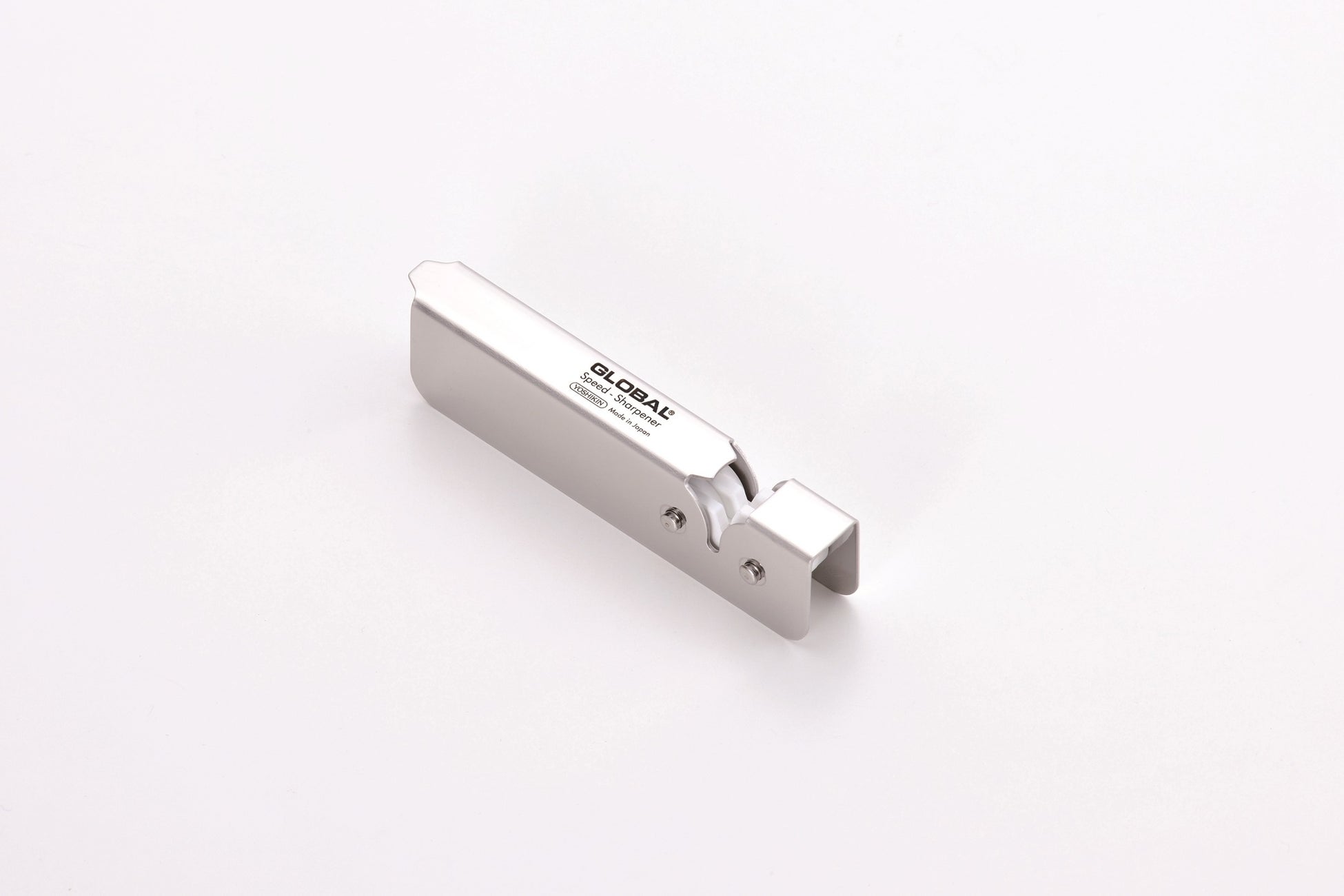 GLOBALの両刃包丁用の簡易シャープナーです。包丁の切れ味が鈍り始めたら、軽く手前に6~10回引いて頂く事で、切れ味を一時的に蘇らせることが出来ます。