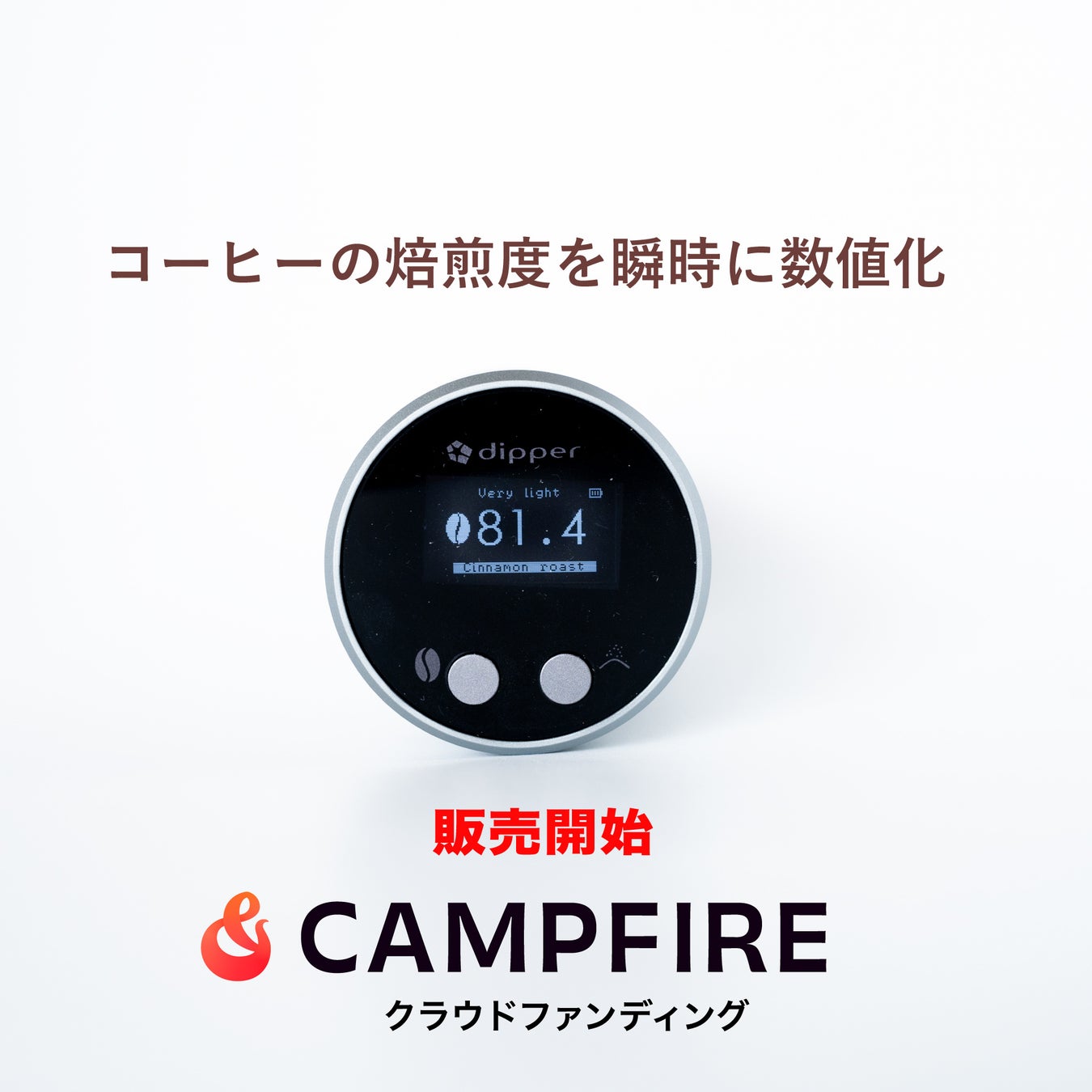 クラファン国内最大級《CAMPFIRE》から販売開始!!コーヒー豆の焙煎度をデジタル測定する【コーヒー焙煎度測定機 《dipper》】が待望の正式発売。コーヒー焙煎のDX化促進