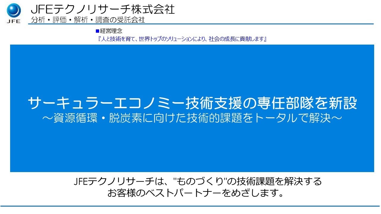 サーキュラーエコノミー技術支援の専任部隊を新設 JFEテクノリサーチ