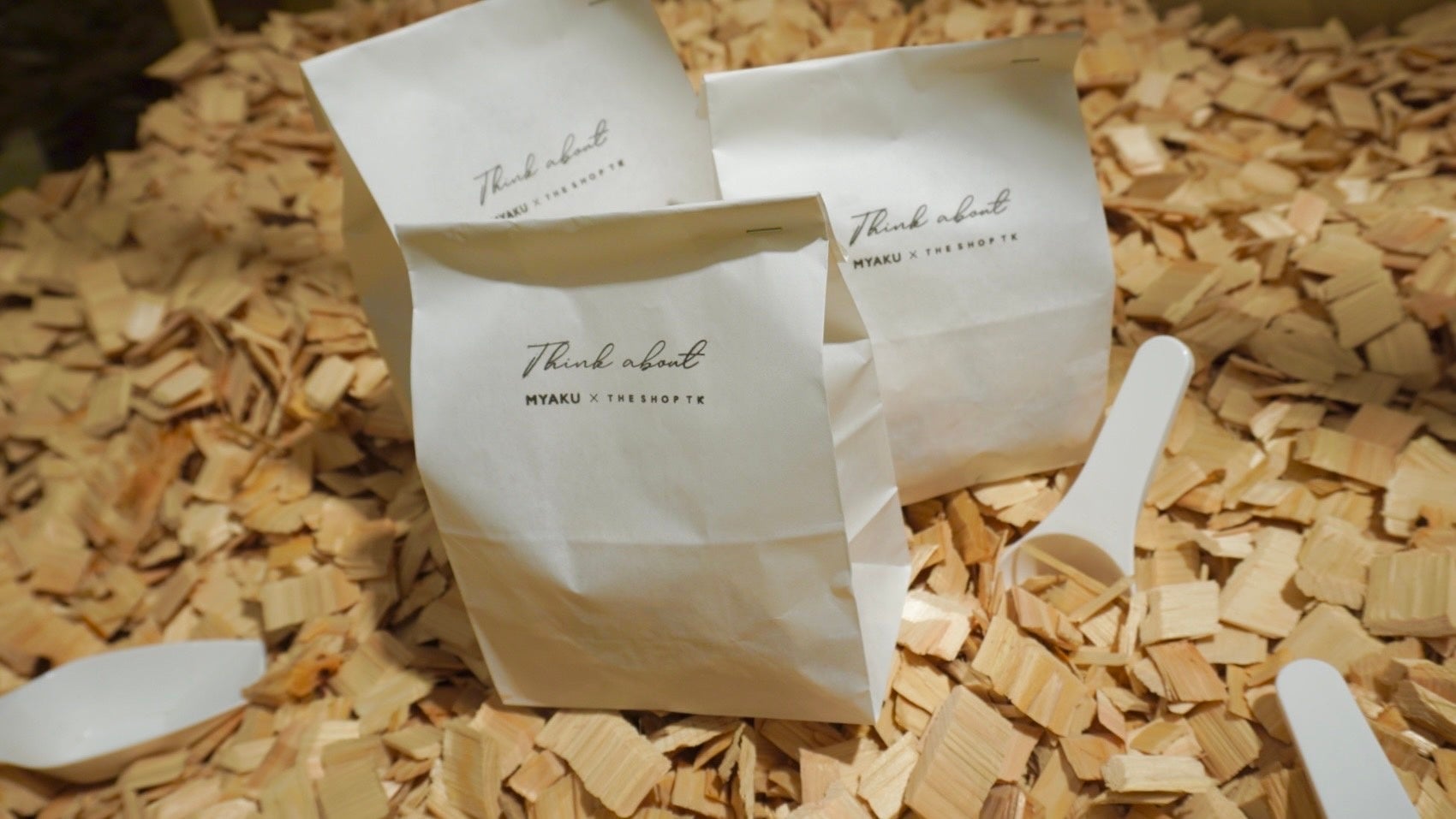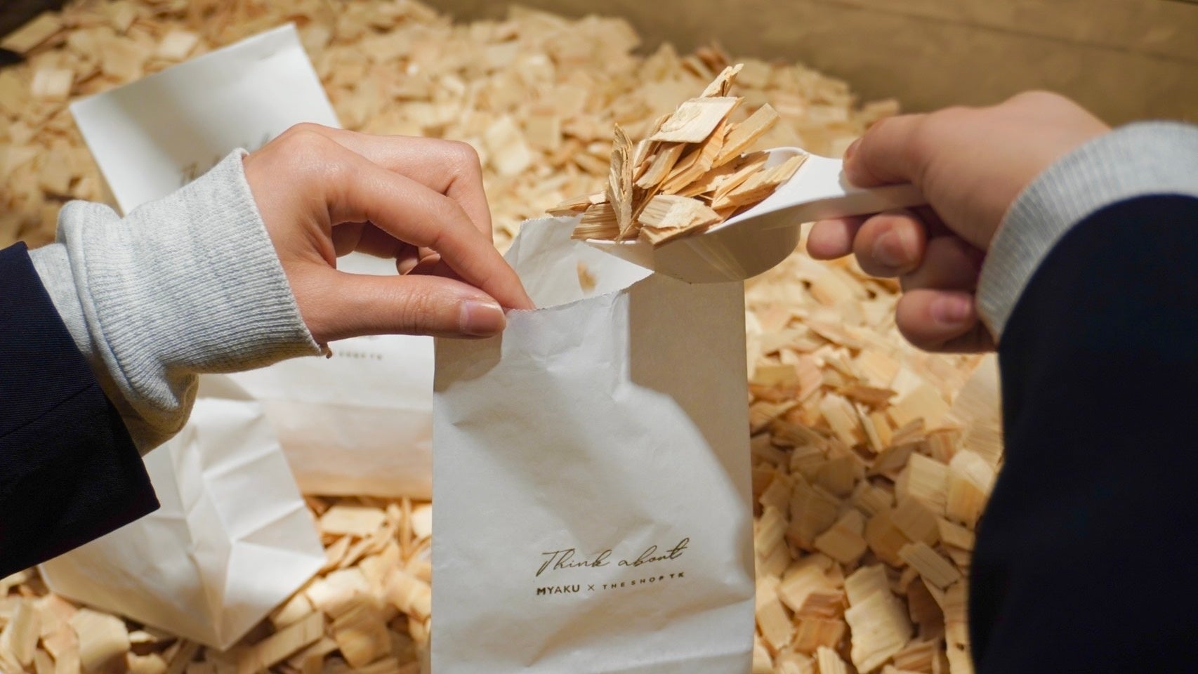 サステナブルブランドMYAKU(ミャク)を展開する株式会社myaku(代表取締役:山本万優、本社:神奈川県横浜市)は、ワールドグループの株式会社アルカスインターナショナルが展開するファッションブランド「THE SHOP TK(ザ ショップ ティーケー)」とコラボし、4/18(金)オープンの三井ショッピングパーク ららぽーと安城店で、「ひのき香るチップ」をご来店の皆様に無料配布致します。