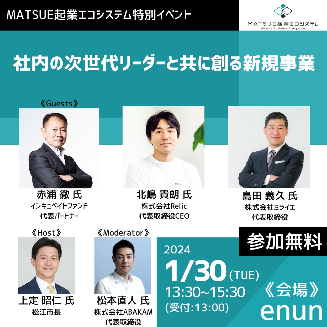 MATSUE起業エコシステムコンソーシアムは、団体設立1周年を記念し、顧問の赤浦徹氏などをお招きしてトークセッションを開催します。