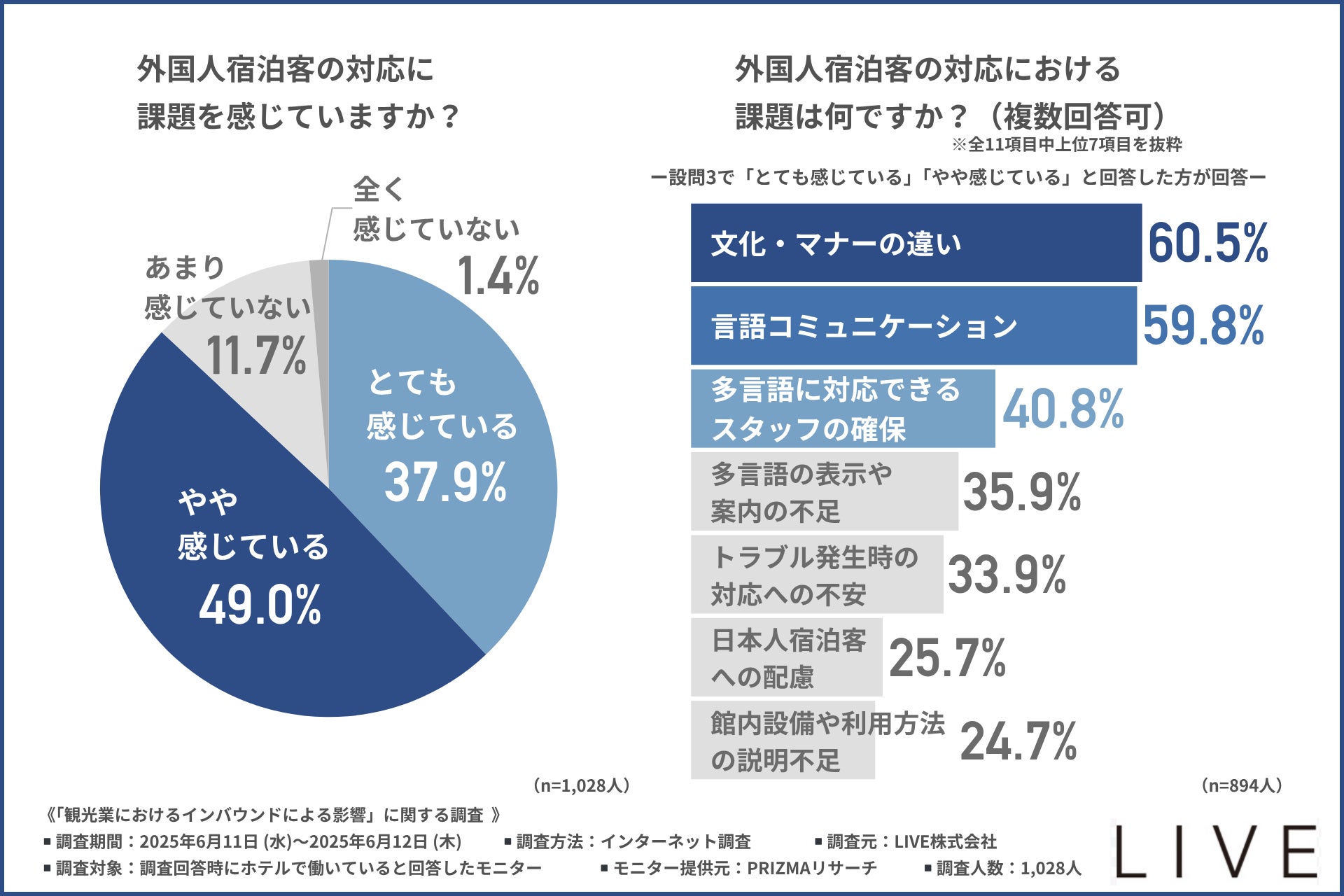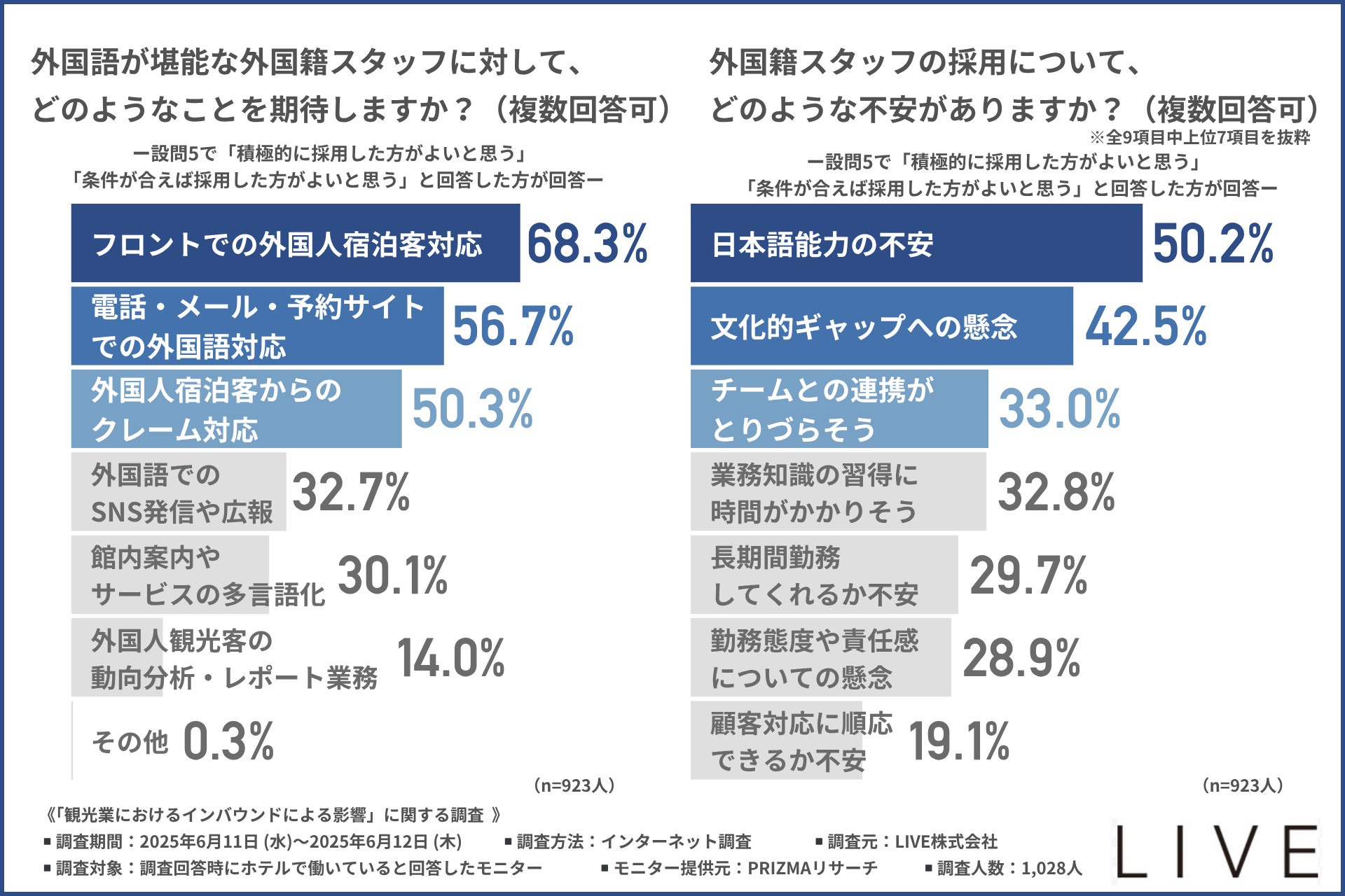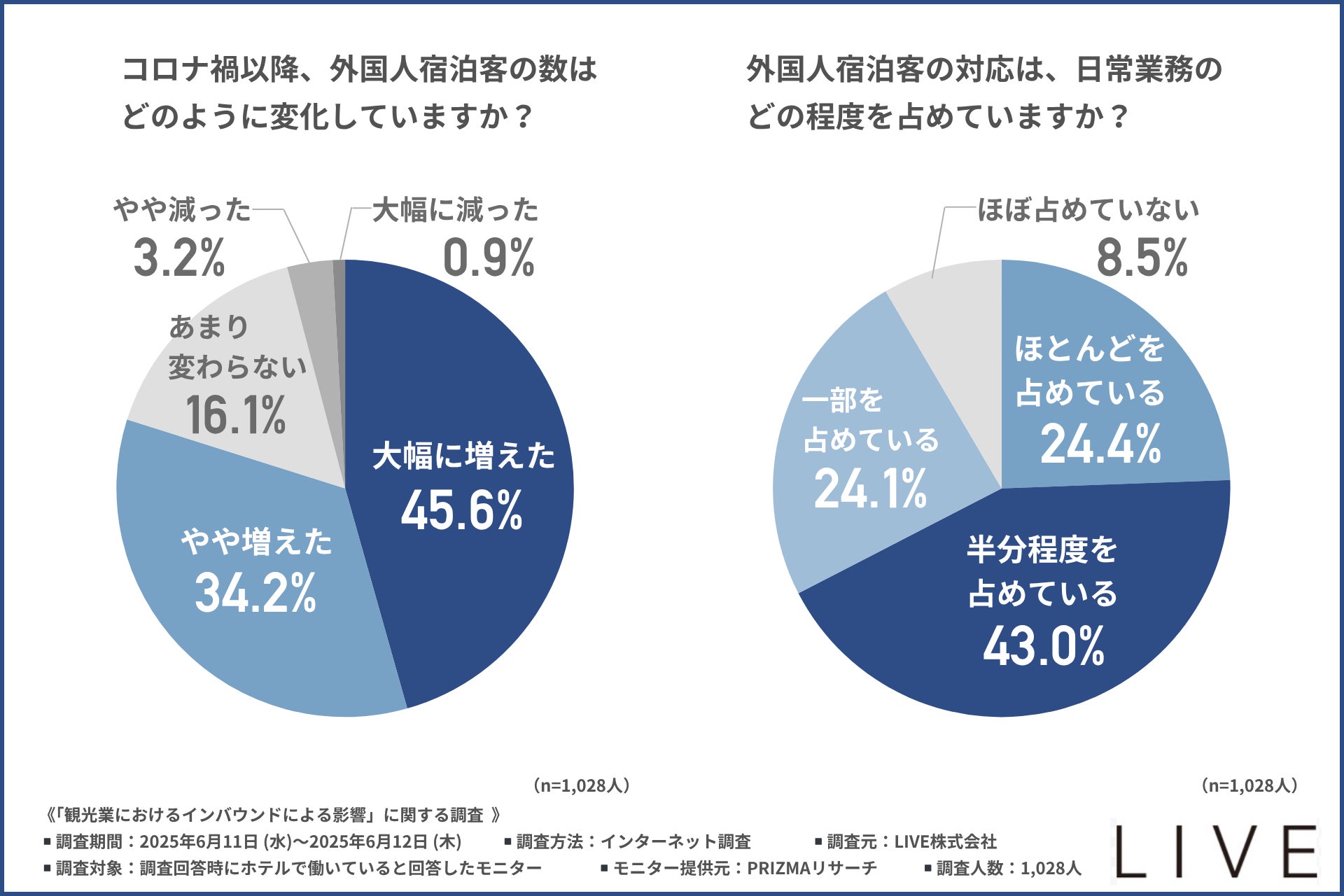 LIVE株式会社(所在地:愛知県名古屋市、代表取締役:山本 大輔 https://group.live-inc.co.jp/felo/)は、ホテルで働いている方を対象に、「観光業におけるインバウンドによる影響」に関する調査を行いました。