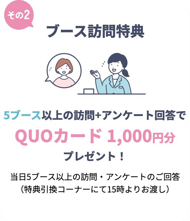 5ブース以上の訪問+アンケート回答でQUOカード1,000円プレゼント!