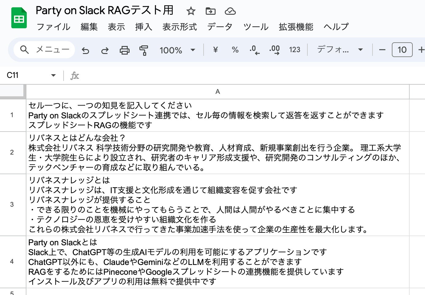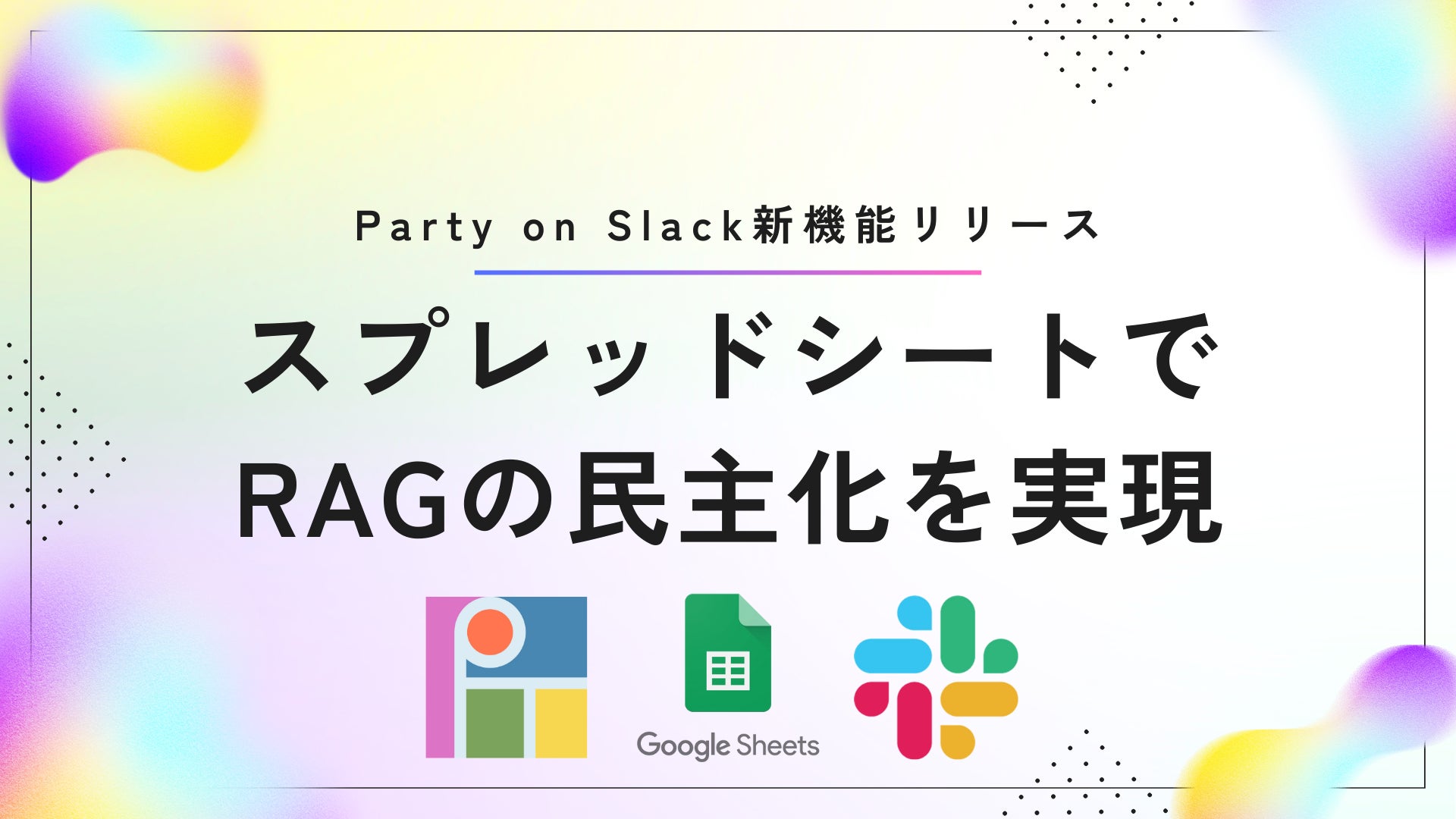 自社情報をスプレッドシートに入れるだけで、生成AIが独自情報を踏まえた応対が出来るようになる機能を「Party on #Slack 」で新規リリース!RAGの民主化を実現
