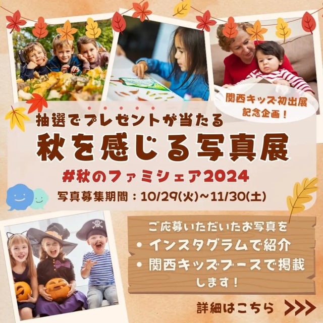 インスタグラムで #秋のファミシェア2024 のハッシュタグをつけて写真やリール動画を投稿いただくと、関西キッズ機器展の写真展へ参加できます。