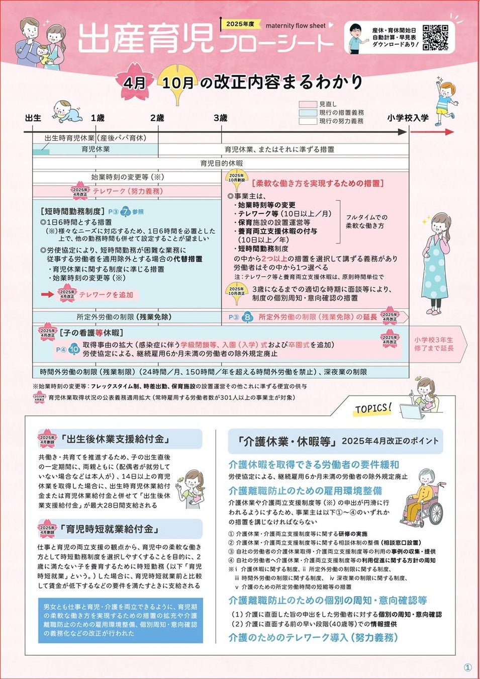 出産・育児の法規制&諸手続の流れがこれ1枚でわかる「出産育児フローシート」6/10発売、2025年4月・10月施行の育介法改正に対応