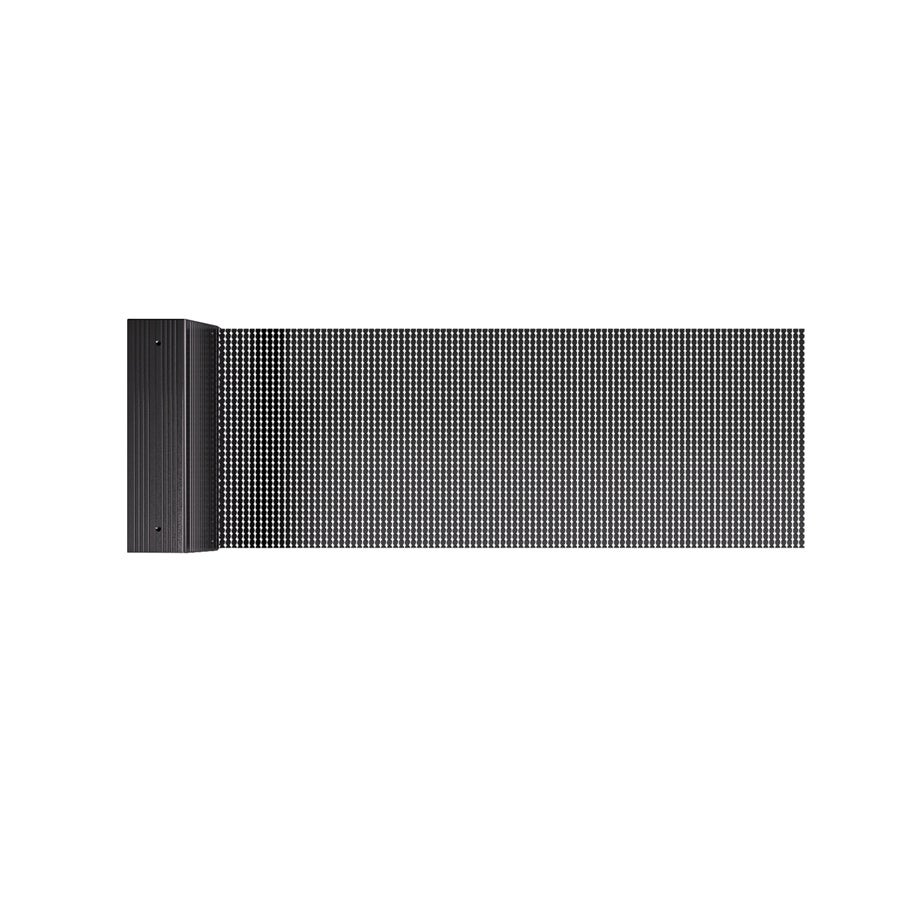 最大透過率90%のメッシュ素材を採用した超薄型・フレキシブルなモジュール。ガラス面や曲面の設置に最適でドット欠け防止オプションなど用途に応じた選択が可能。