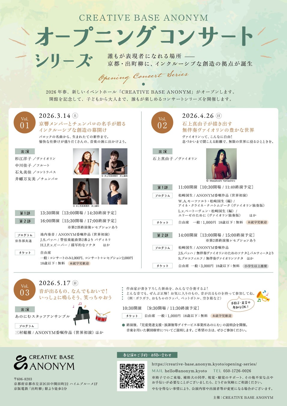 【京都・出町柳】芸術と福祉が循環するインクルーシブな創造拠点「ANONYM」2026年3月オープン。総額680万円超の支援を集め、京響メンバーらによる記念公演を開催