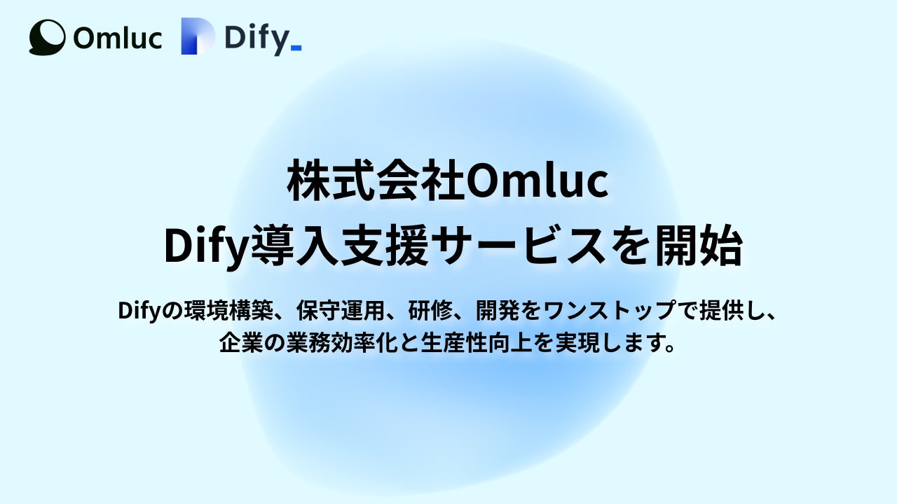 株式会社Omluc(本社:東京都港区、代表取締役:岸田 崇史)は、法人向けに生成AIプラットフォーム「Dify」の導入をサポートする新サービス「Dify導入支援サービス」を開始いたします。