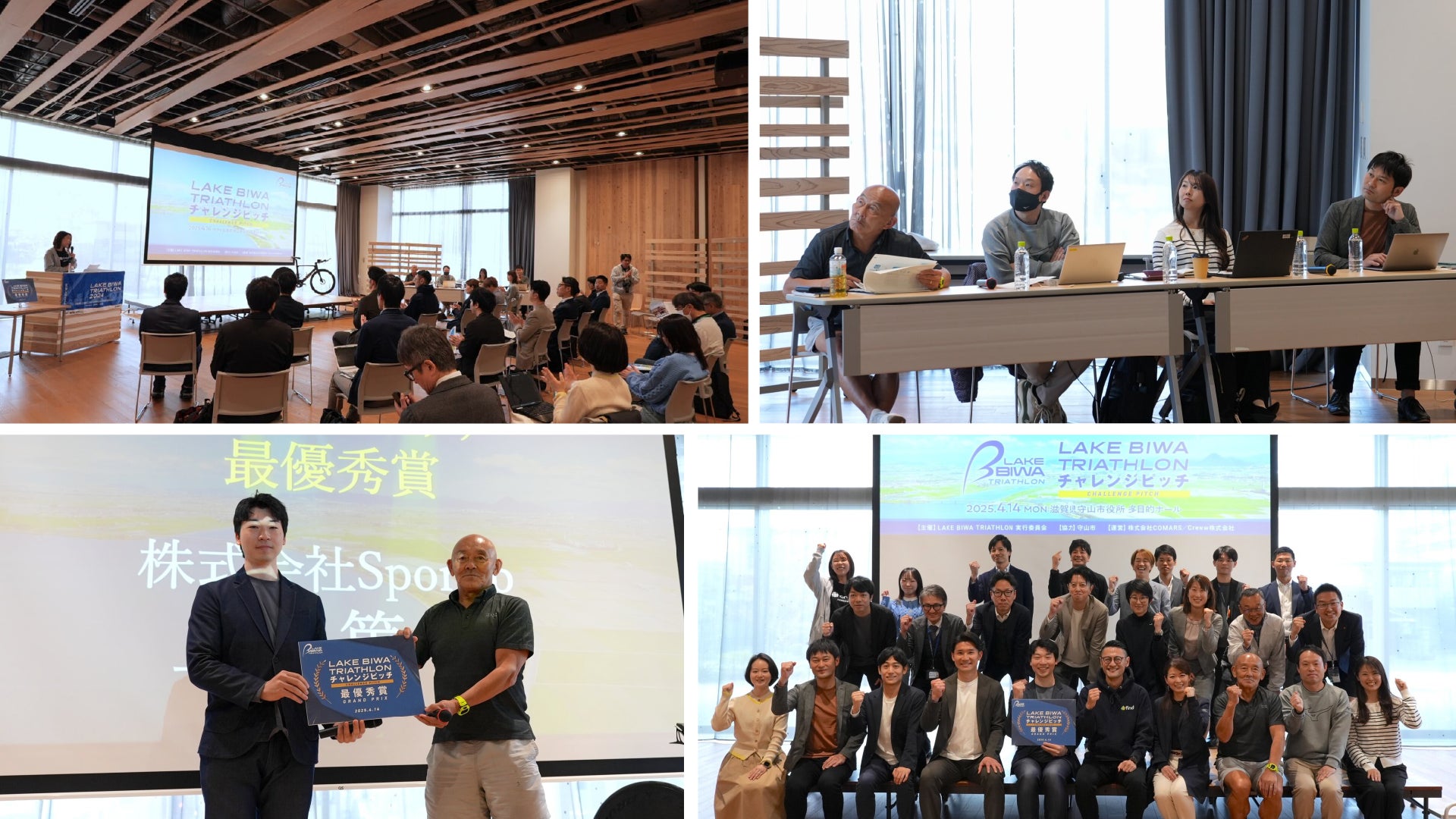 守山市との官民連携による取り組みの1つとして、4月には、LAKE BIWA TRIATHLONを舞台に、世界に誇る大会の実現、琵琶湖周辺での官民連携による受入環境整備に向けて、社会を変革する新しい技術・サービスを持つスタートアップからの企画提案を募集するピッチコンテスト「LAKE BIWA TRIATHLONチャレンジピッチ」を守山市の後援のもと、株式会社COMARS、Creww株式会社とともに実施しました。