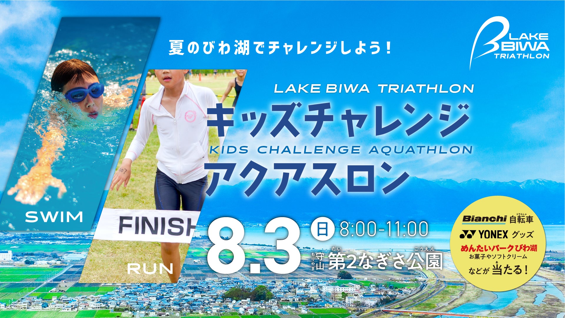 本大会のスピンオフイベントとして、2025年8月3日(日)に本大会のメイン会場でもある守山市の第2なぎさ公園にて、地域の小学生を対象とした「LAKE BIWA TRIATHLON キッズチャレンジアクアスロン」を開催します。
