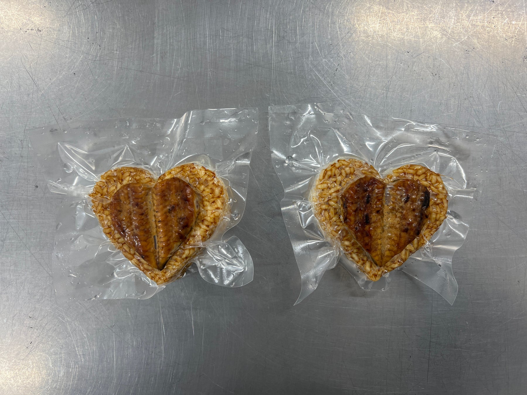 うなぎ屋かわすいで大好評の焼きおにぎりを活用し、「うなぎ」と「おにぎり」を両方ハート型に成型。バレンタイン商品のリニューアルが完成しました!