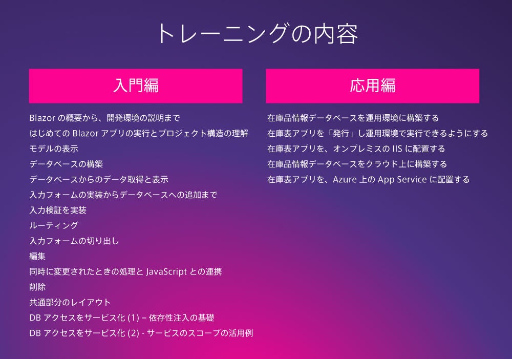 内容:Blazor技術トレーニング(入門編・応用編)の無料提供