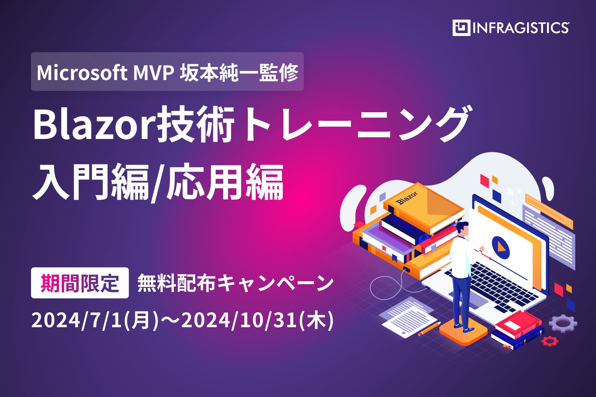 開発生産性向上に貢献する製品提供を行うインフラジスティックス・ジャパン株式会社は、Blazor技術トレーニングの「入門編」および「応用編」を2024年10月31日までの期間限定で無料配布します。