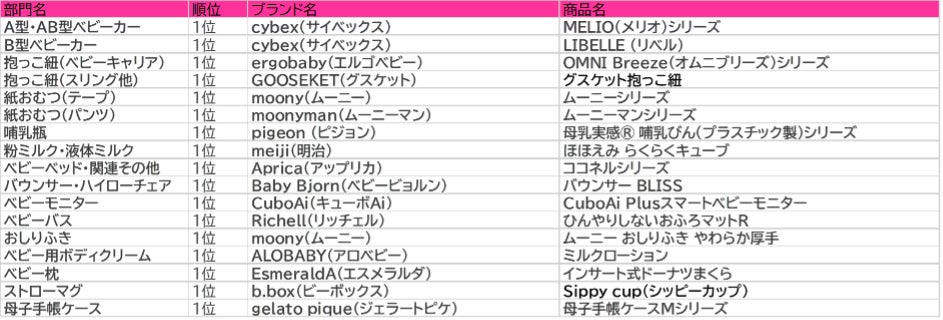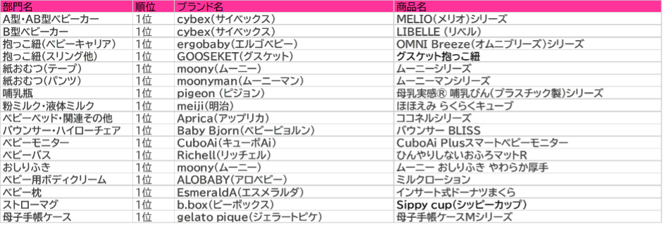 グッズ部門別の上位ランキング結果や、商品の情報は「べビュー」公式サイトの特設ページに掲載しています。