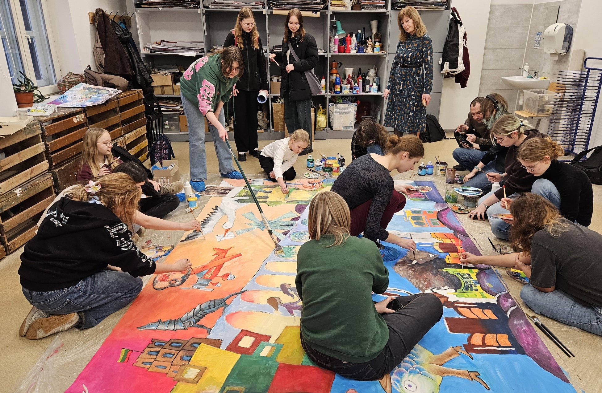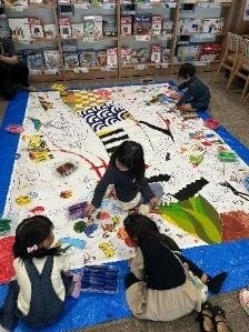 会期中、2023年にリトアニアと敦賀の子どもたちが、言葉の壁を越え左右半分ずつ描いて完成させた絵画『大きな友情の架け橋』(縦2.2m×横6.0m)を交流コーナーで展示します。リトアニア カウナスにある杉原記念館(「命のビザ」発給の舞台となった旧日本領事館)でも展示された、壮大な作品です。