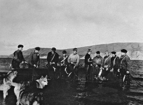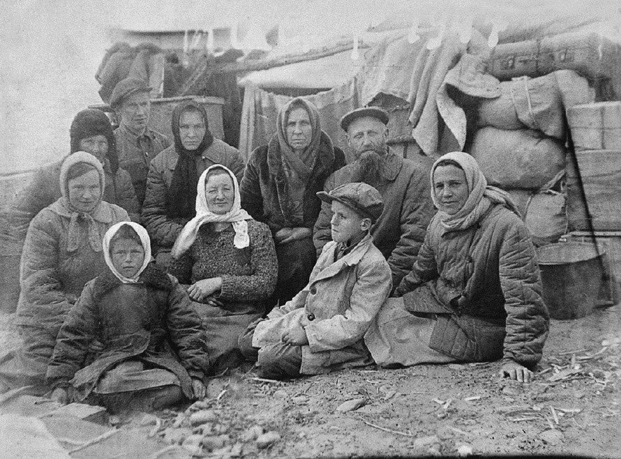 トロフィモフスクへ追放された人々。出航許可を待つ間、彼らは川岸で1か月ほど暮らした。