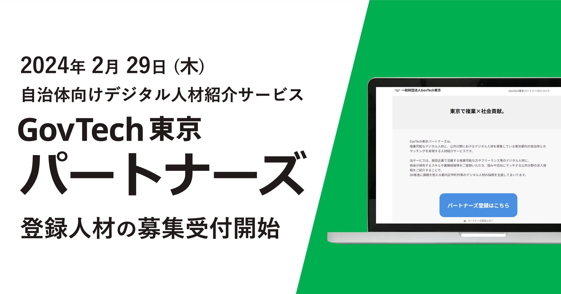 自治体向けデジタル人材紹介サービス「GovTech東京パートナーズ」登録人材の募集を開始