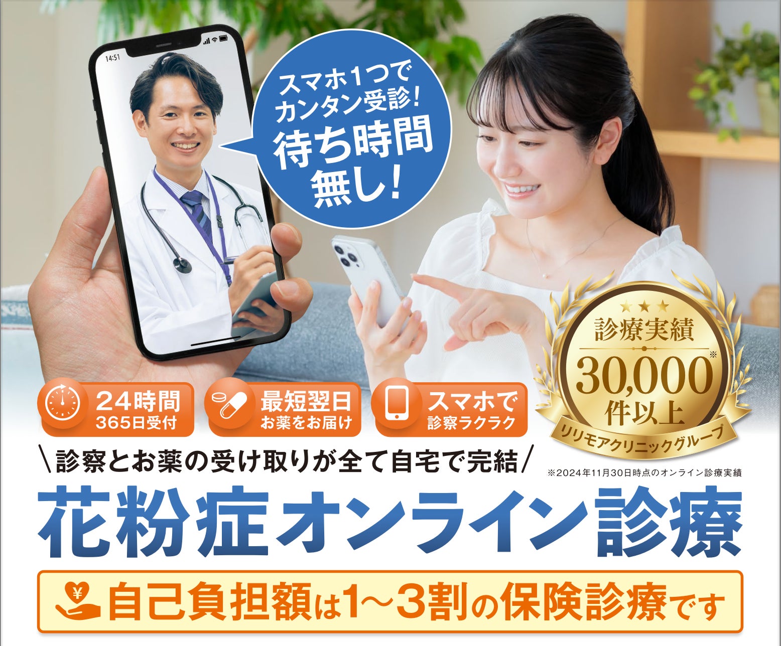 こうした状況を踏まえ、リリモアクリニックでは 「花粉症オンライン診療」 を開始しました。