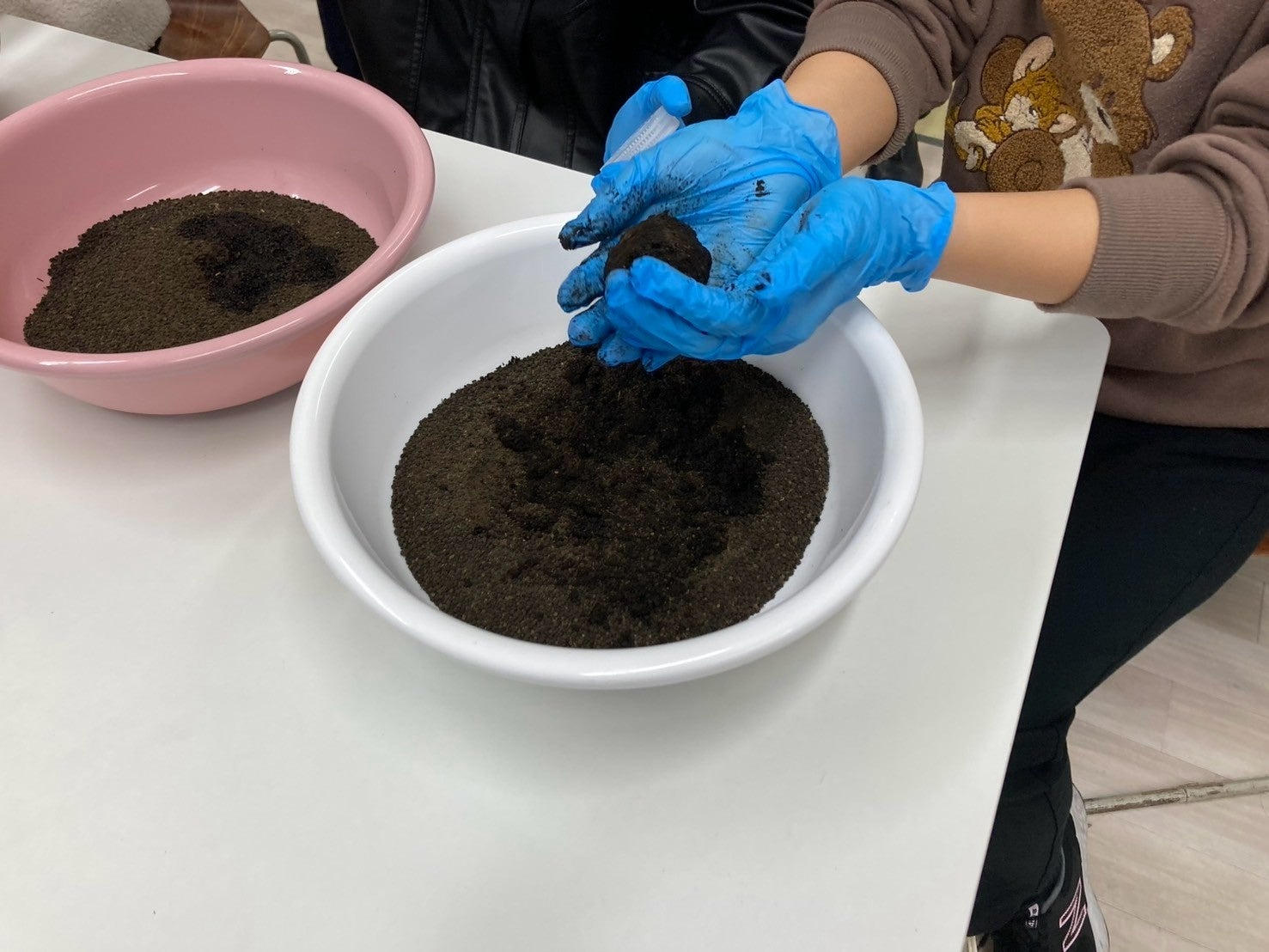 五感を育む体験型コンテンツ 発酵が進んで扱いやすくなった「スマートリッチ」を混ぜた土で泥団子を作るワークショップを提案。匂いが抑えられているため、従来の牛ふん堆肥では難しかった子ども向け教材としての活用が可能になりました。