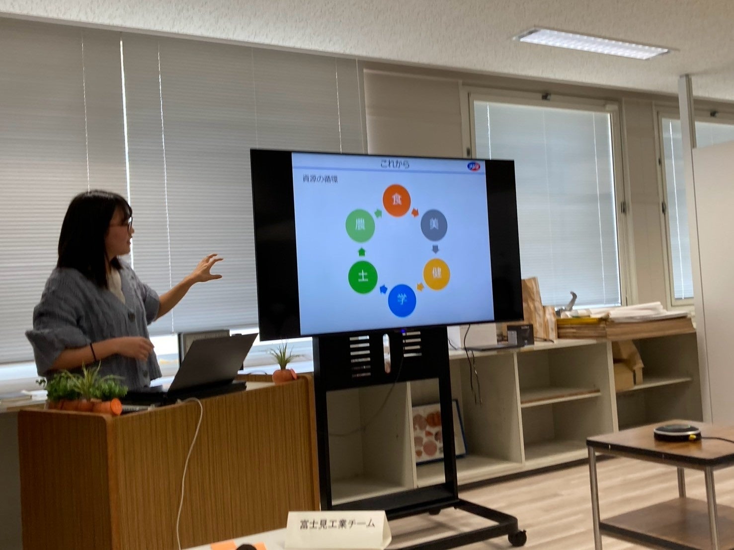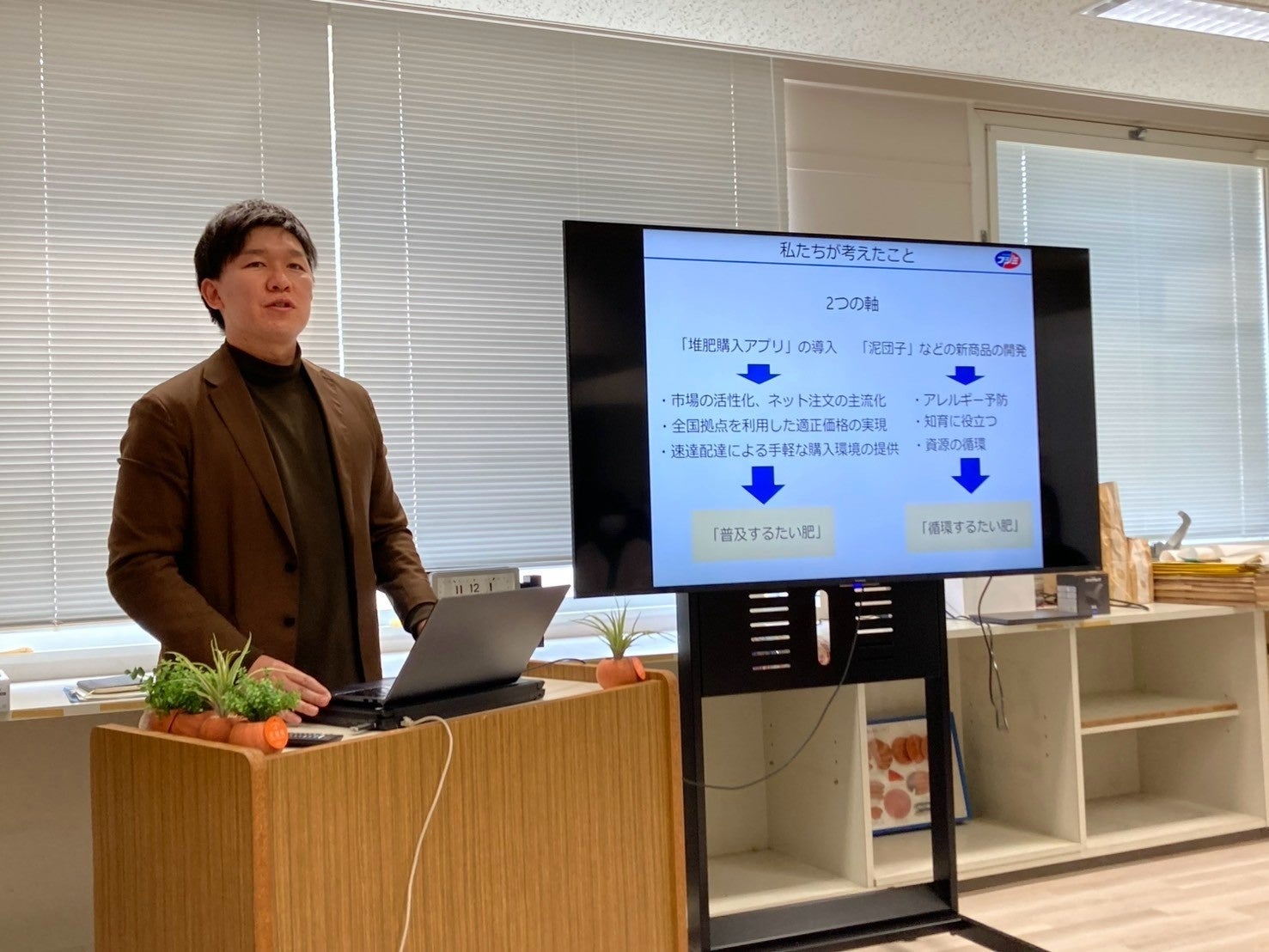 2025年3月14日に行われた成果発表会では、「堆肥購入アプリ構想」「泥団子づくりによる免疫力向上プログラム」など、堆肥の新たな可能性を多角的に探るアイデアを提案。従来の牛ふん堆肥の課題を解決した「スマートリッチ」が、農業のみならず教育・健康分野までを含む「食・美・健・学・土・農」の循環システム構築へと発展する可能性を発表しました。