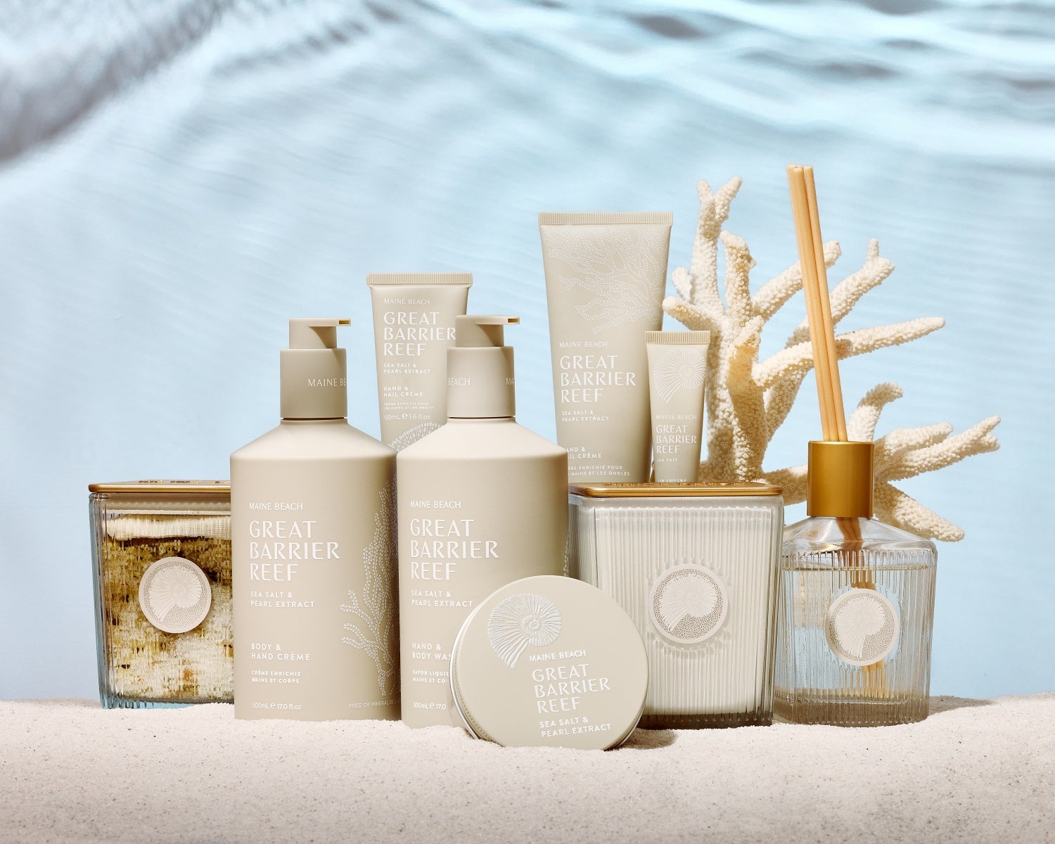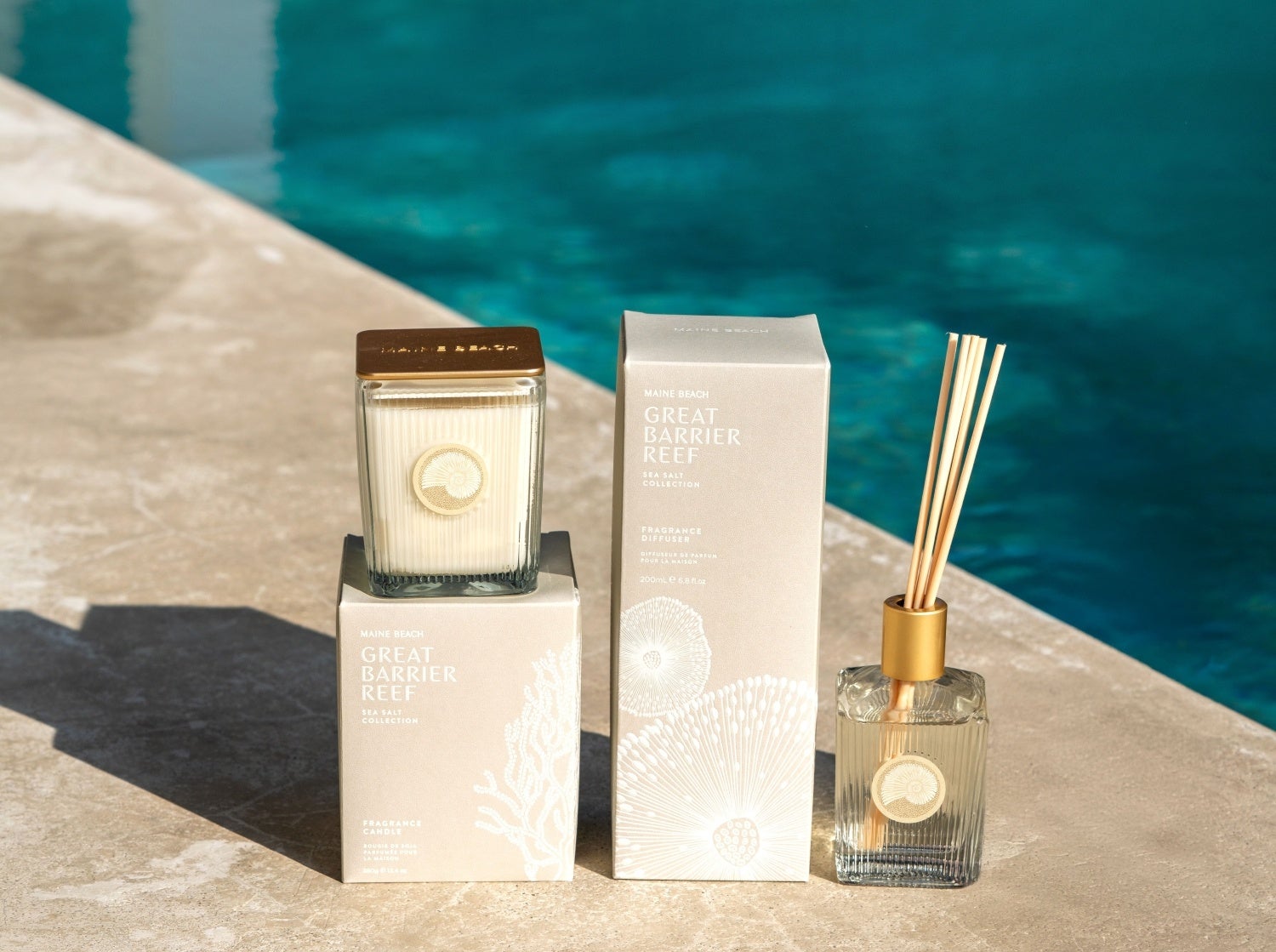 世界遺産でもある天然記念物グレートバリアリーフを讃えたボディケア&ホームフレグランスコレクションは、シーソルト&パールエキス配合で夏の保湿ケアに、また落ち着いたクールなグレートーンのディフューザーは夏を彩るインテリアに最適です。
