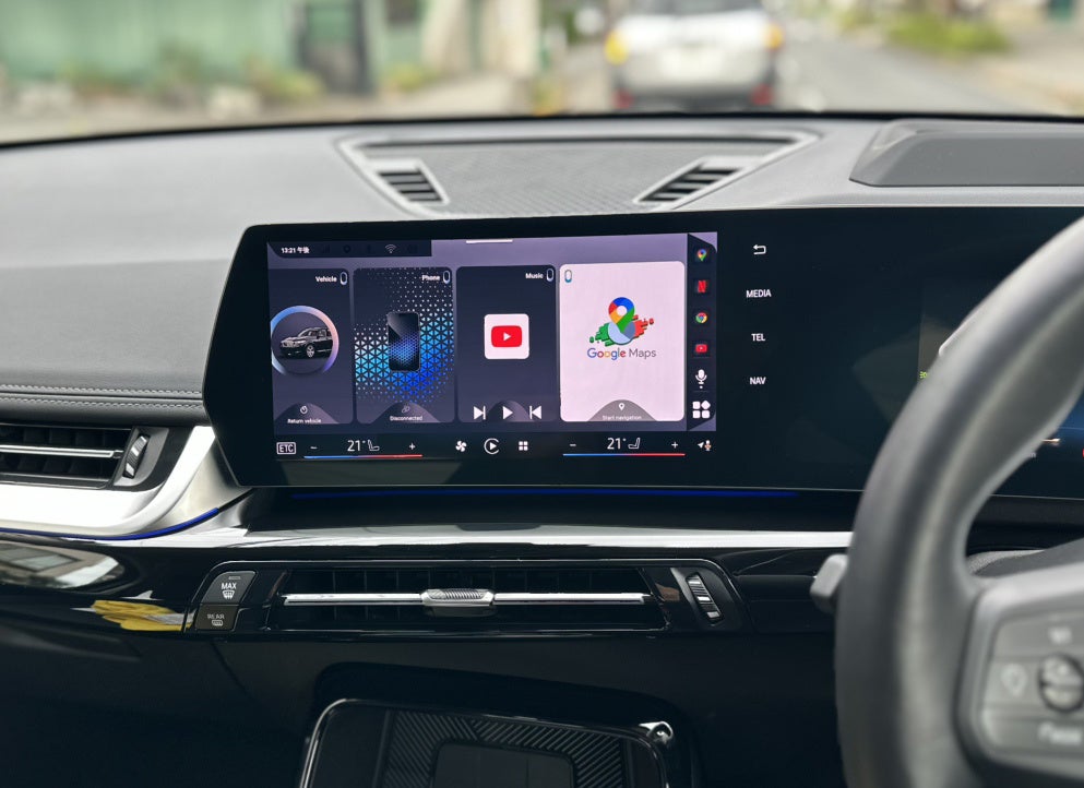 BMW、MINI車両に標準搭載されるWireless Carplayに対応し、車内で Amazon Prime、Netflix等の各種サブスクリプションをお楽しみ頂けるAndroidインターフェース