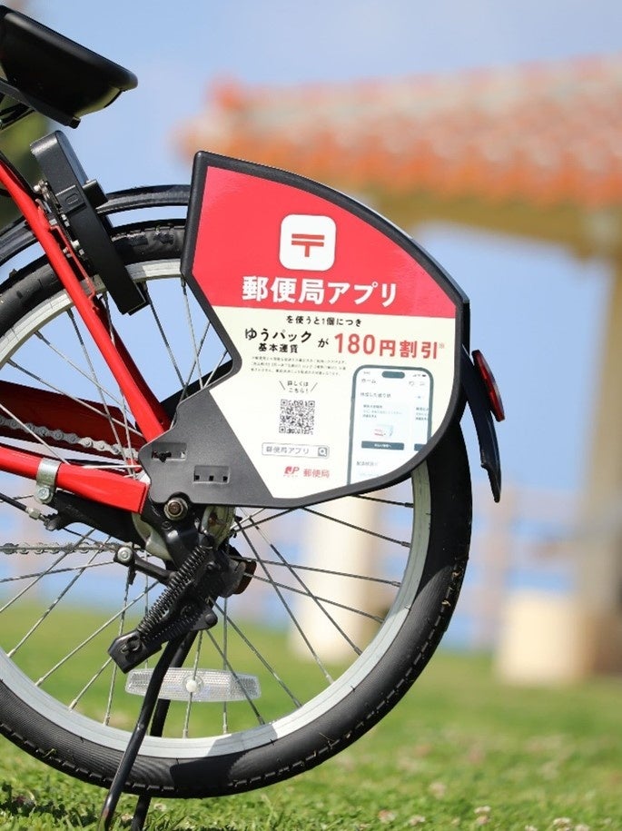 自転車の車体広告スペースへ日本郵便のサービスに関するステッカーを掲出するなど、両者の事業における活性化を目指します。