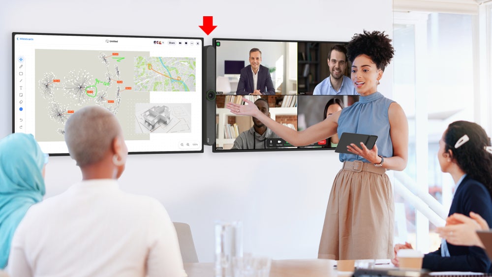 画期的な取り付けオプション: DTEN Barは、ディスプレイの上下に水平に、デュアルディスプレイの間に垂直に設置することで、最大限の柔軟性を実現します。