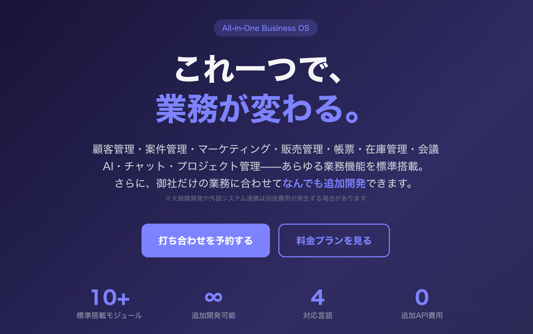 「自社の課題/要望/業務にフィットした業務機能がすべて揃い、データが一箇所に集約され、AIが業務を補助してくれるプラットフォームがあれば——」