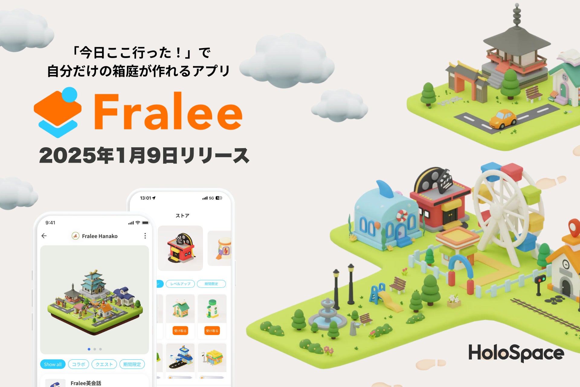 2025年1月9日、ARや位置情報を活用したエンタメコンテンツの企画・提供を行う株式会社HoloSpace(代表取締役:鬼柳裕介|東京都渋谷区)は、訪れた場所を記録することで自分だけの箱庭を作るアプリ「Fralee」(https://fralee.jp/)をリリースしました。これに加え、企業サイト(https://corp.holospace.jp/)と、ARデジタルスタンプラリーサービスサイト(https://corp.holospace.jp/ar)も全面リニューアルし、当社のビジョンやサービス内容をよりわかりやすくお伝えできるようになりました。