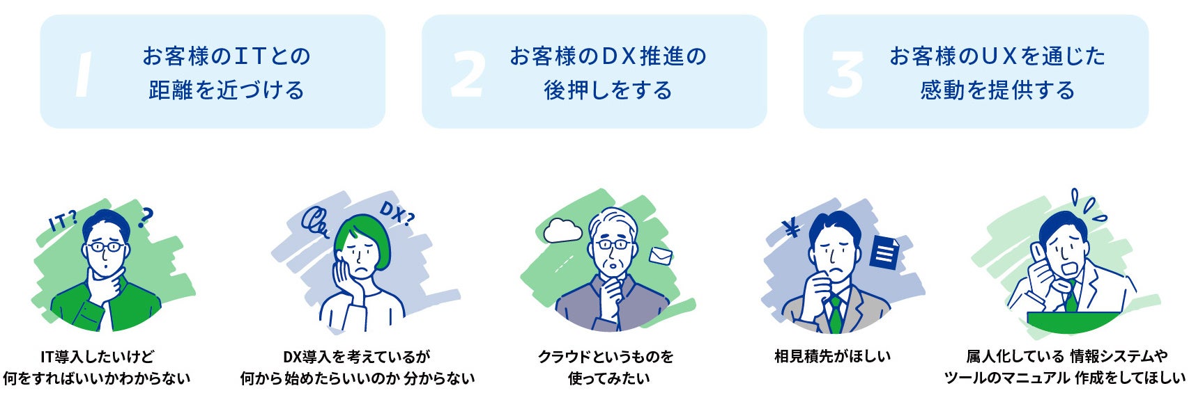 当社では、お客様のご要望に応じたIT導入・運用に関するご相談・対応をワンストップで行い、お客様のITとの距離を近づけるサポートをさせていただきます。