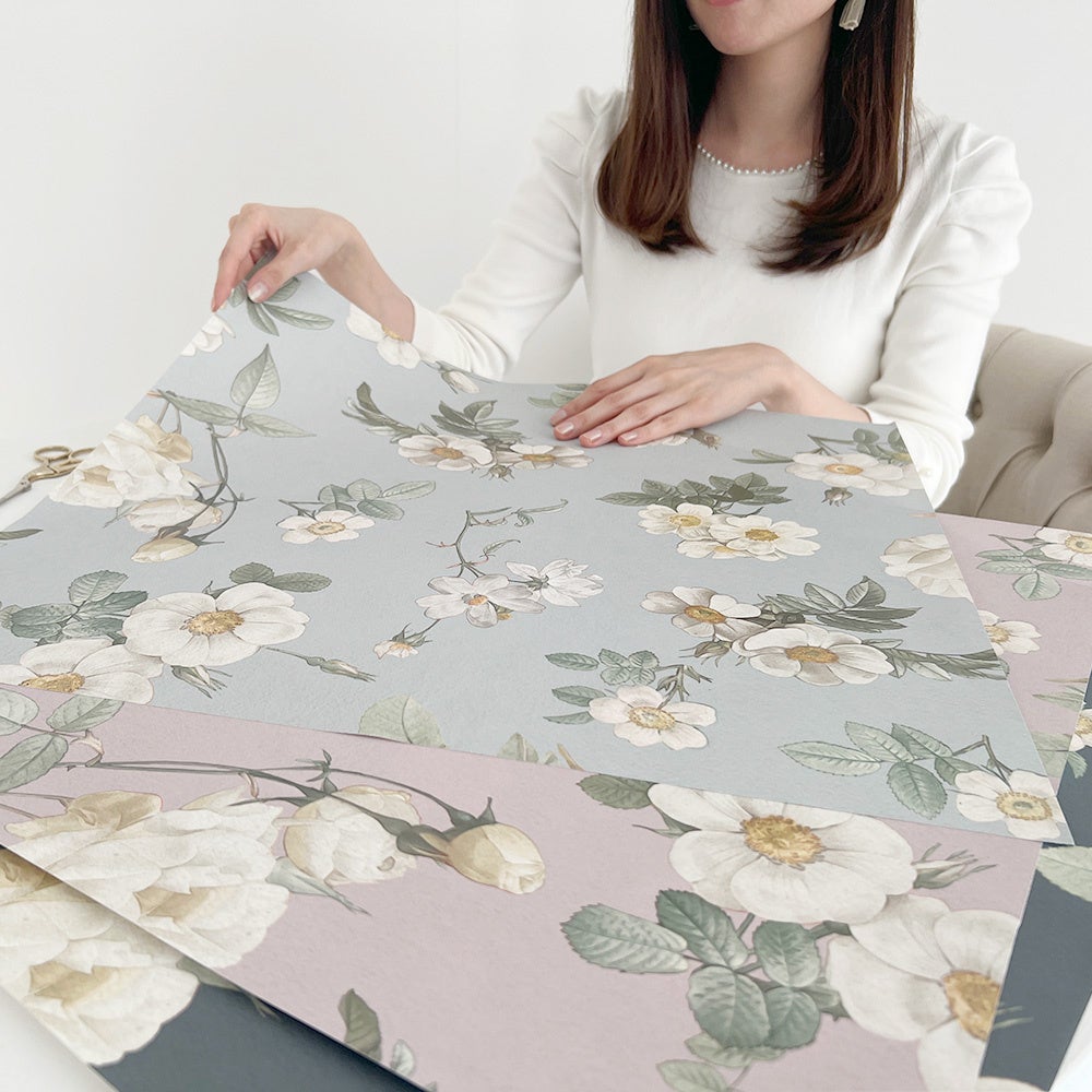上品な花柄やクラシックなダマスク柄を、大人かわいいカラーリングでラインアップ。