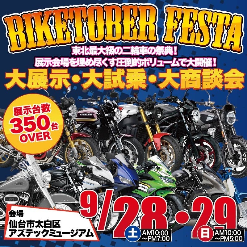 東北最大級のバイク大展示会!総展示台数350台以上!「BIKETOBER FESTA」開催!!